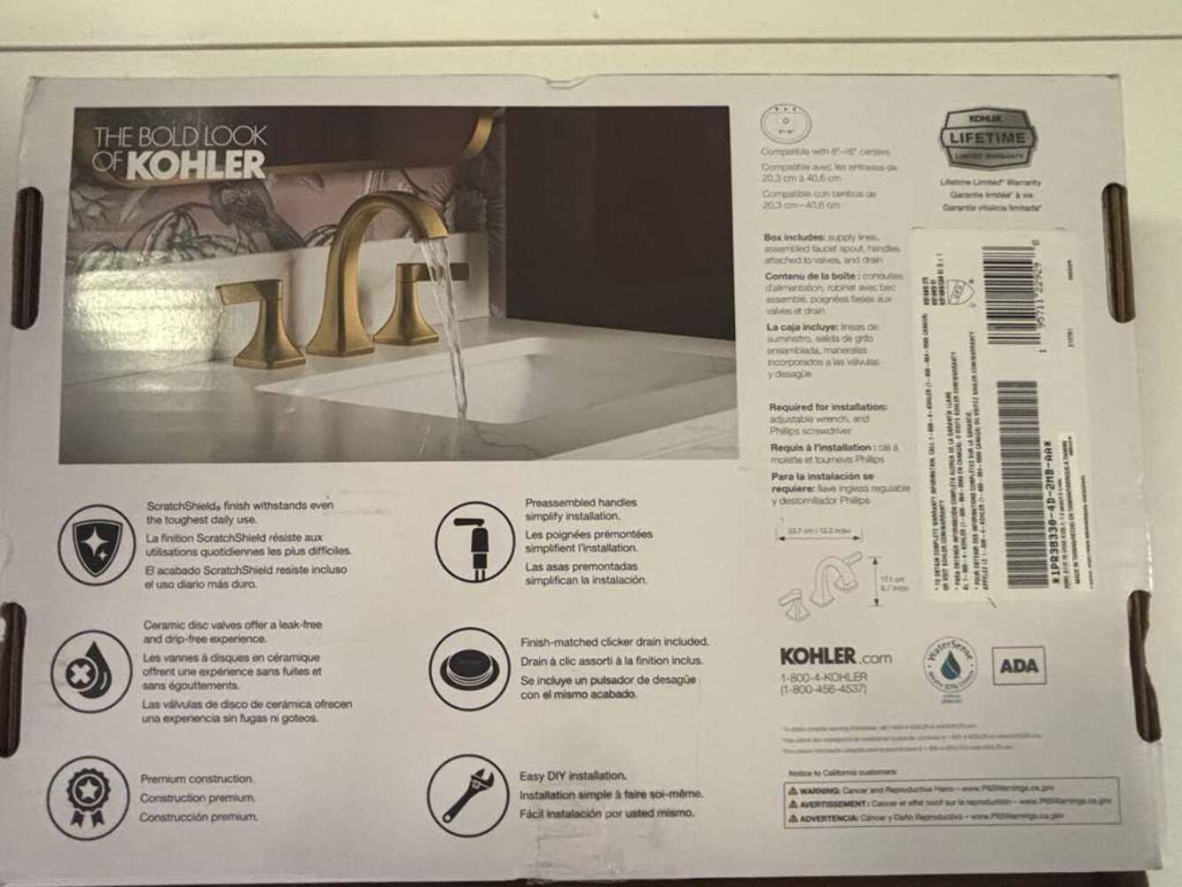 как выглядит Kohler Riverly Brass Widespread Bathroom Faucet 3-Hole w/ Drain Open Box фото