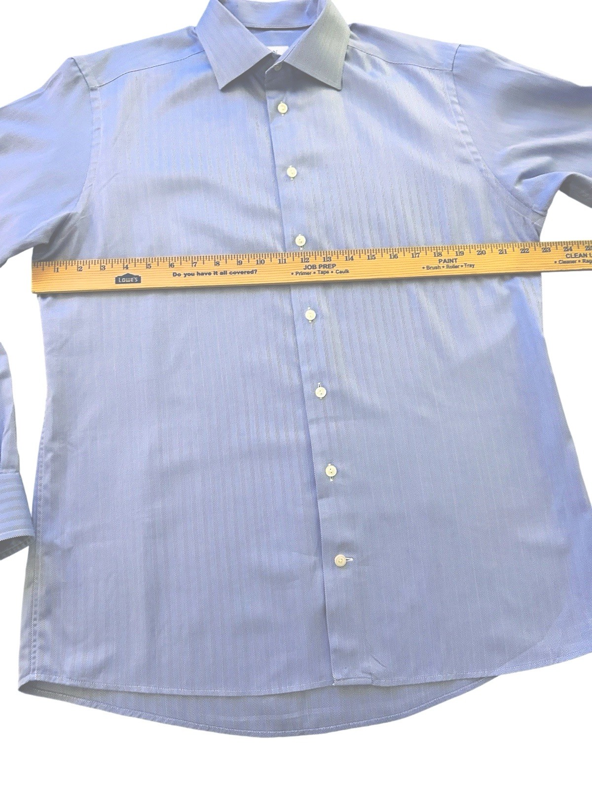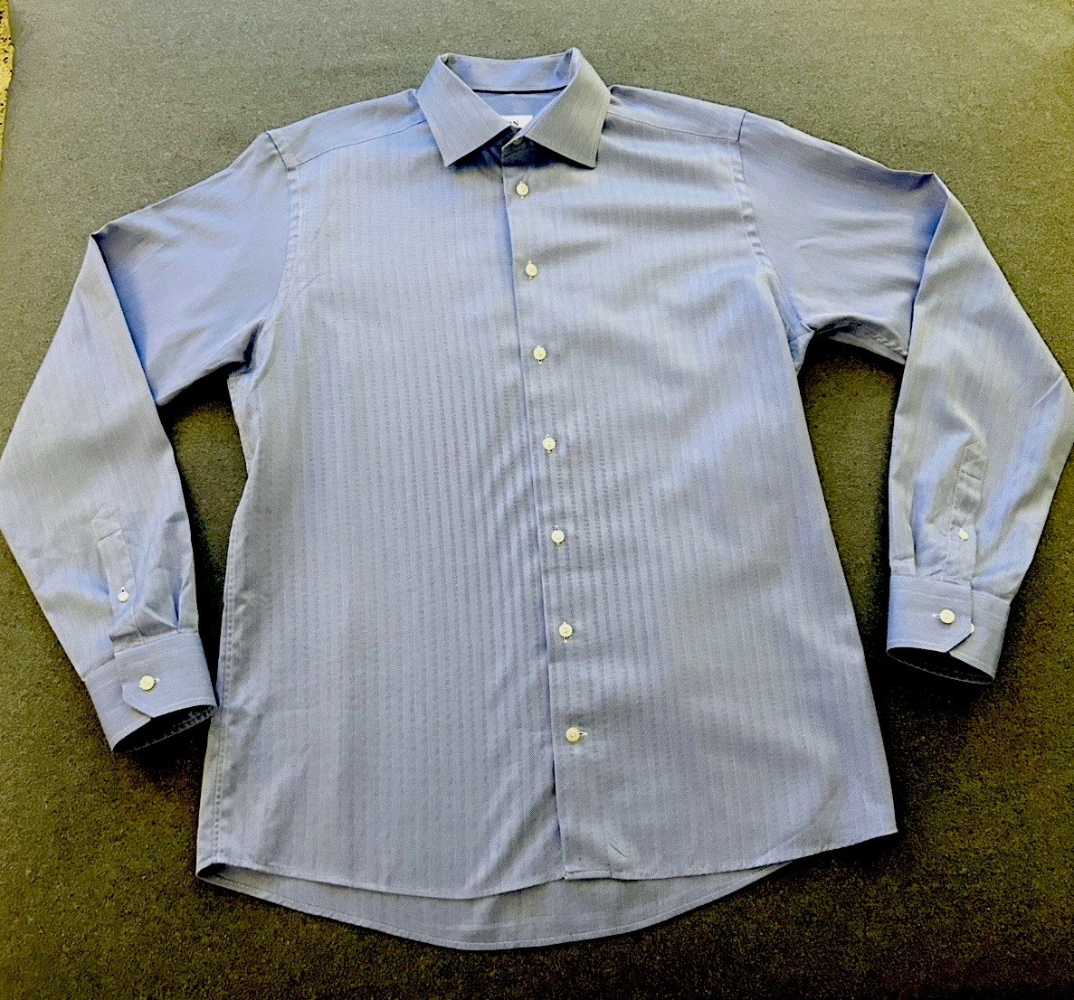 как выглядит Eton Contemporary Mens Shirt 43-17 Slim Fit Blue Herringbone Long Sleeve Shirt фото