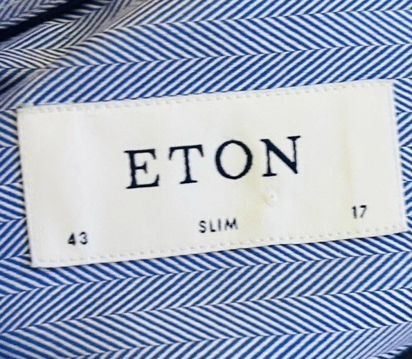 Eton Contemporary Men's Shirt 43-17 Slim Fit Blue Herringbone Long Sleeve Shirt