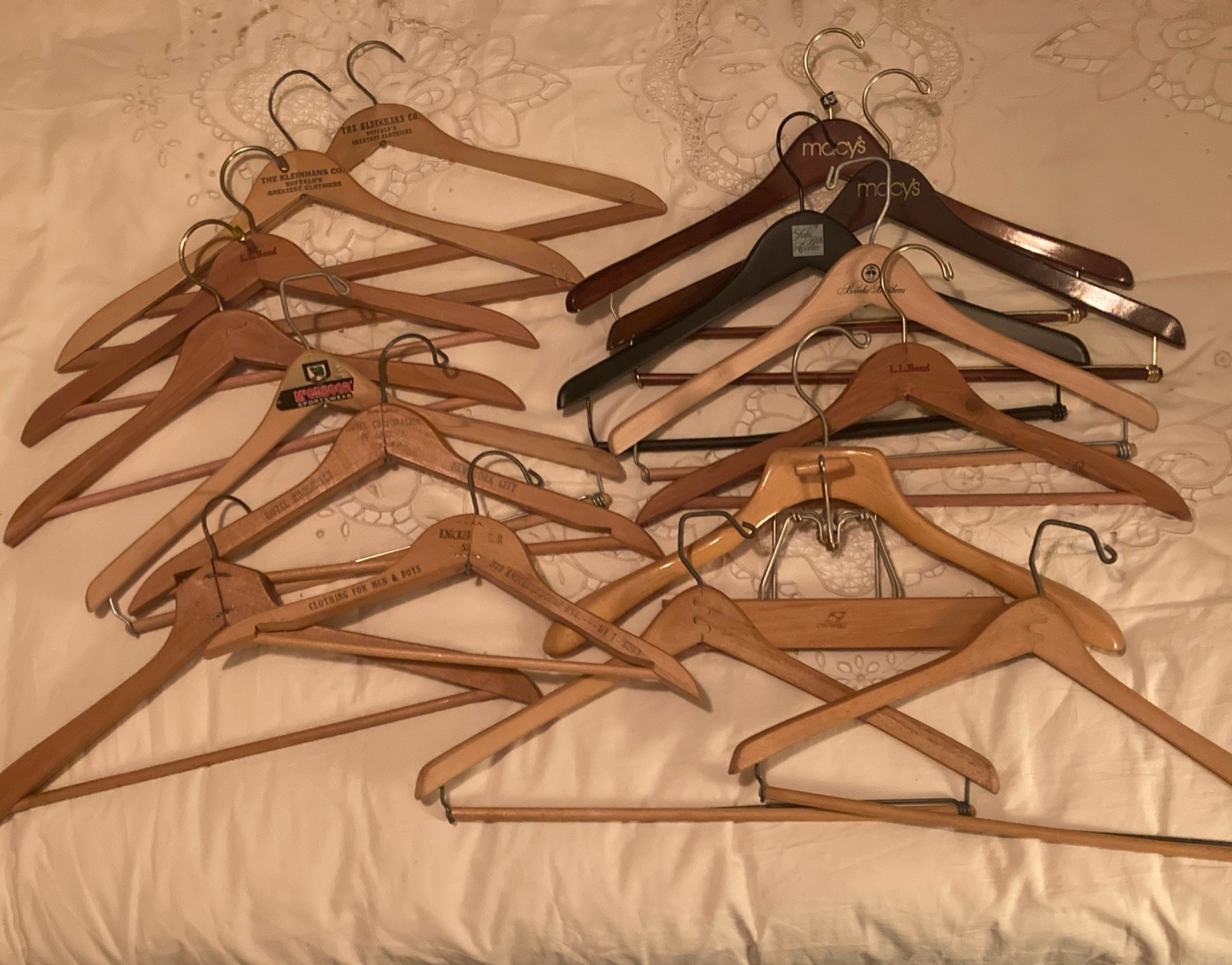 16 Wood Hangers Branded/Unbranded USA MADE LL Bean Macy s Saks Brooks Bros.