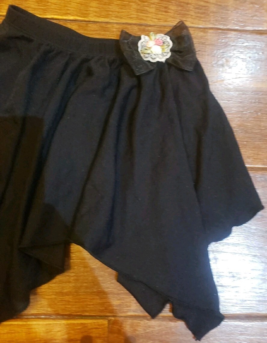 как выглядит VINTAGE JACQUES MORET BLACK BALLET ROSE BOW HI LOW SKIRT SIZE 8/10 M фото