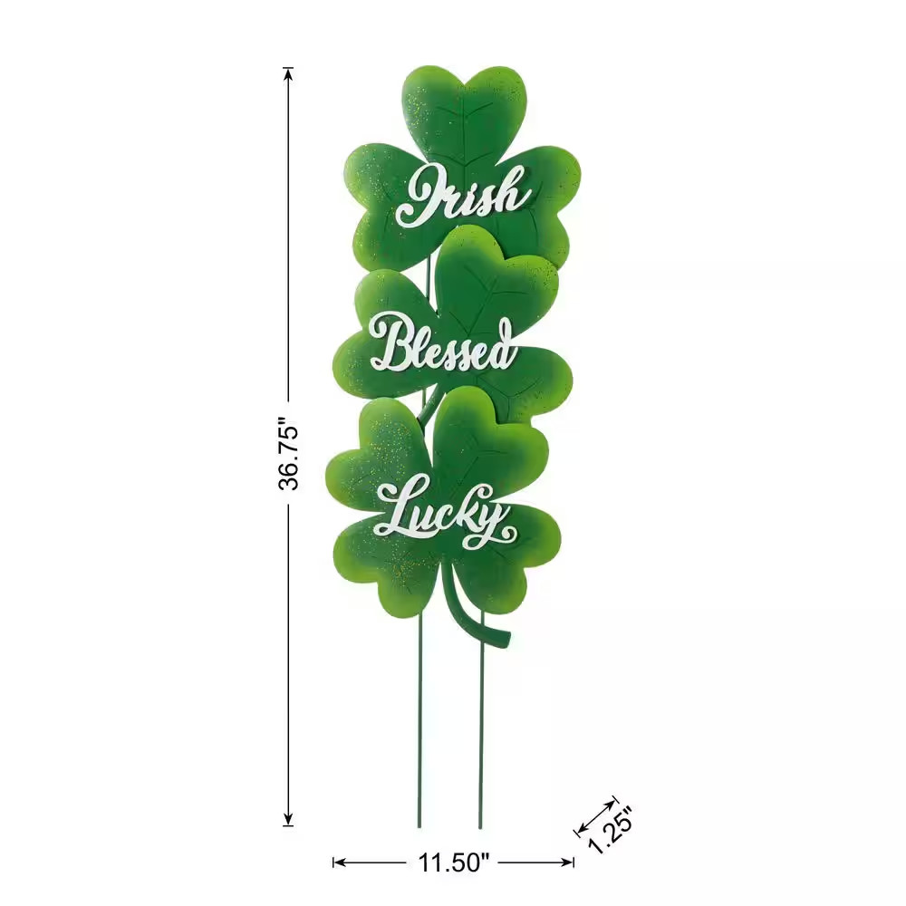 36.75 In. H Set of 3 St. Patrick'S Metal Shamrock Yard Stake KD