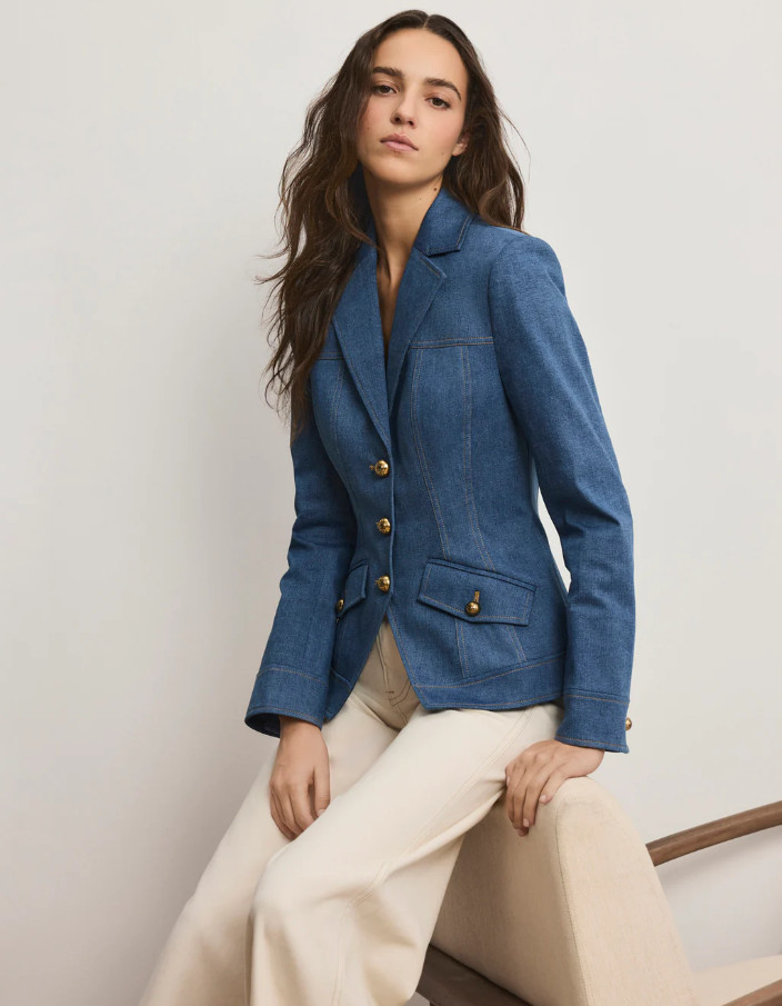 как выглядит NEW AUTH VERONICA BEARD Randy Denim Dickey Jacket Cosmo фото