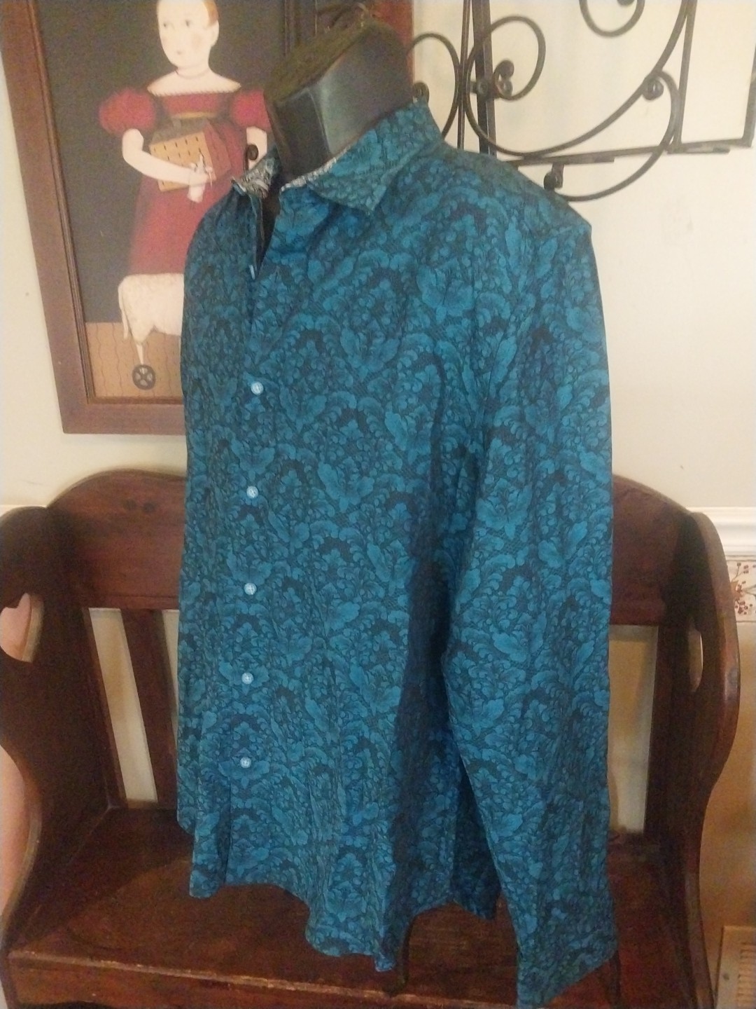 как выглядит ROBERT GRAHAM SHIRT BLUE FLORAL CONTRAST CUFF XL BUTTON FRONT фото