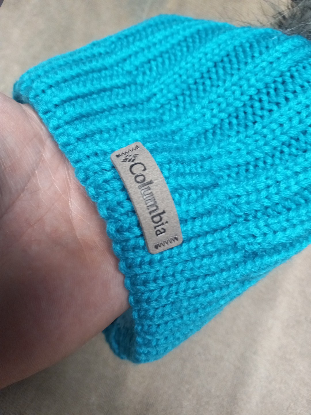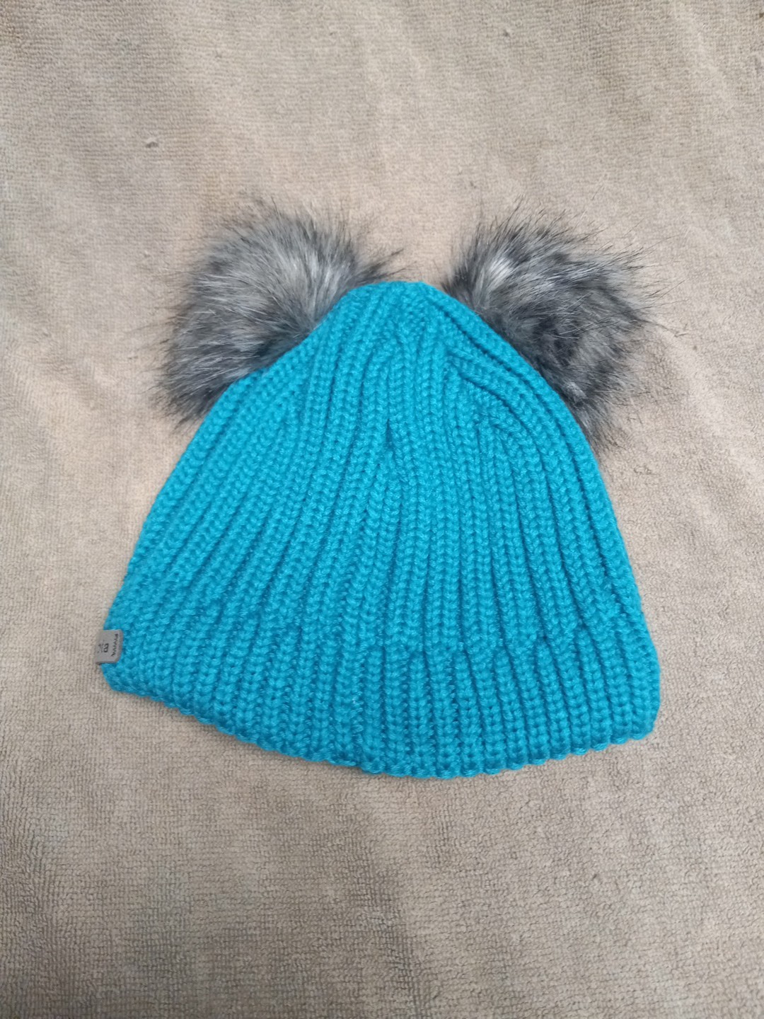 как выглядит Youth - Columbia - Teal Blue Beanie Winter Hat With 2 Fur Poofs Fleece Lined O/S фото