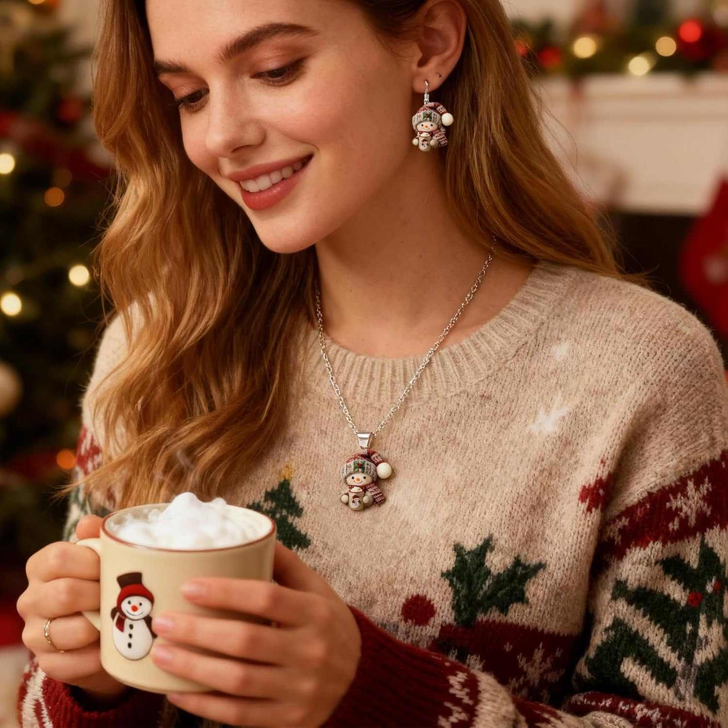 как выглядит Christmas Necklace Jewelry Set Dainty Chain Choker Trendy Pendant Necklace Earri фото