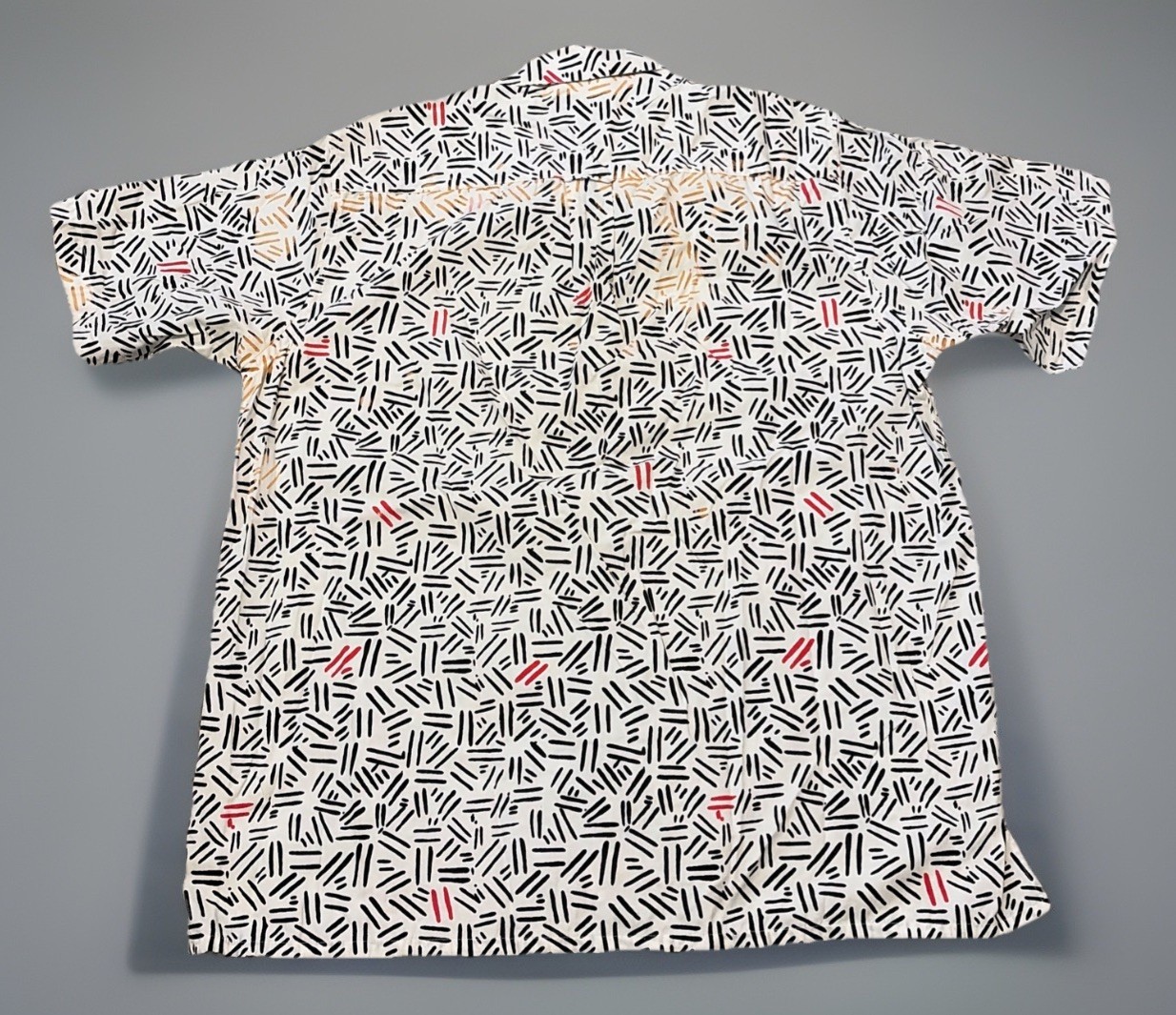 Vintage 90s IZOD White Geometric Print Button Up Casual Shirt Large Cotton