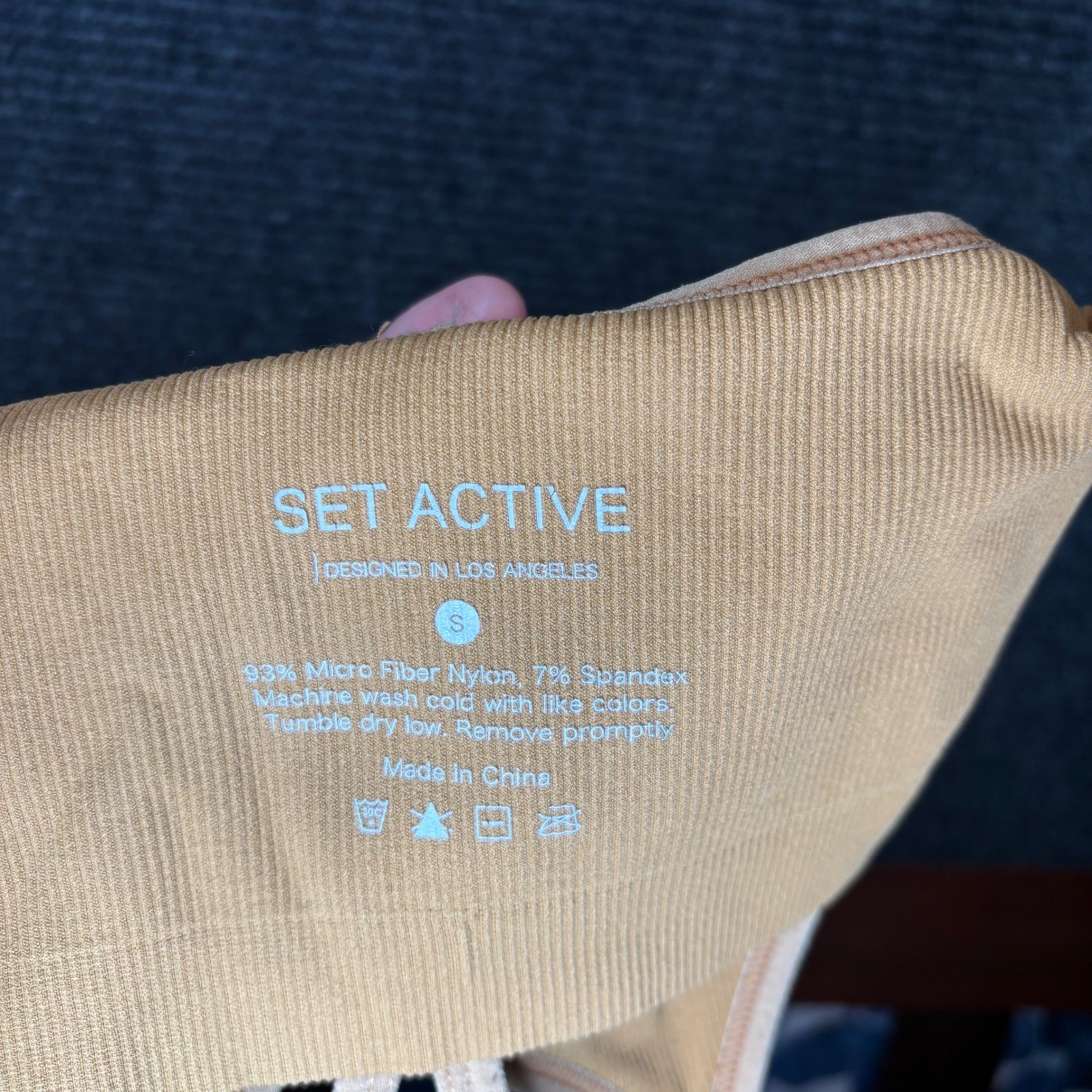 Set Active Ribbed V-Neck Sports Bra Ochre Tan Sculptflex Racerback Womens Small