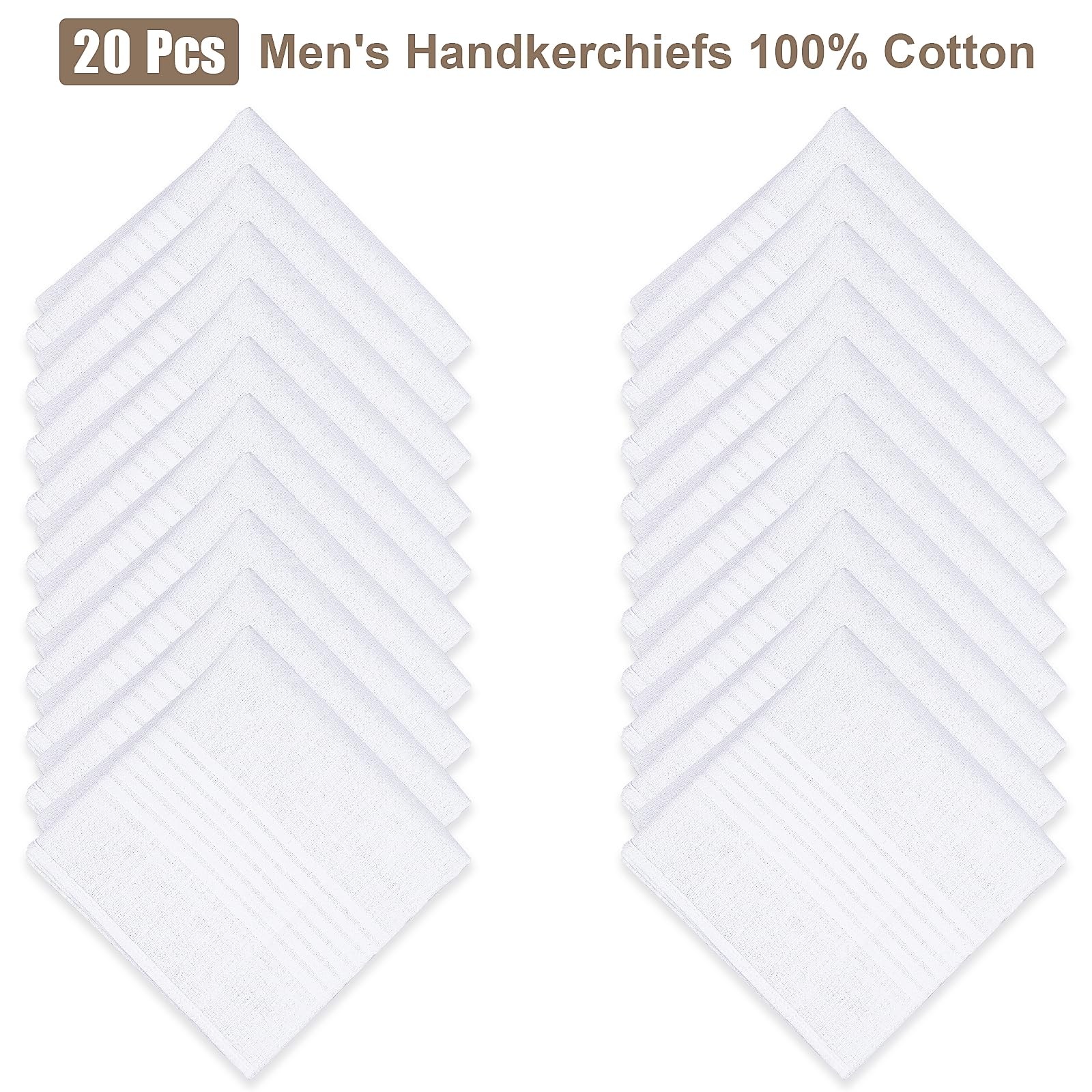 20 Pcs Cotton Handkerchiefs, White Men's Handkerchiefs Pocket Squares, Large H