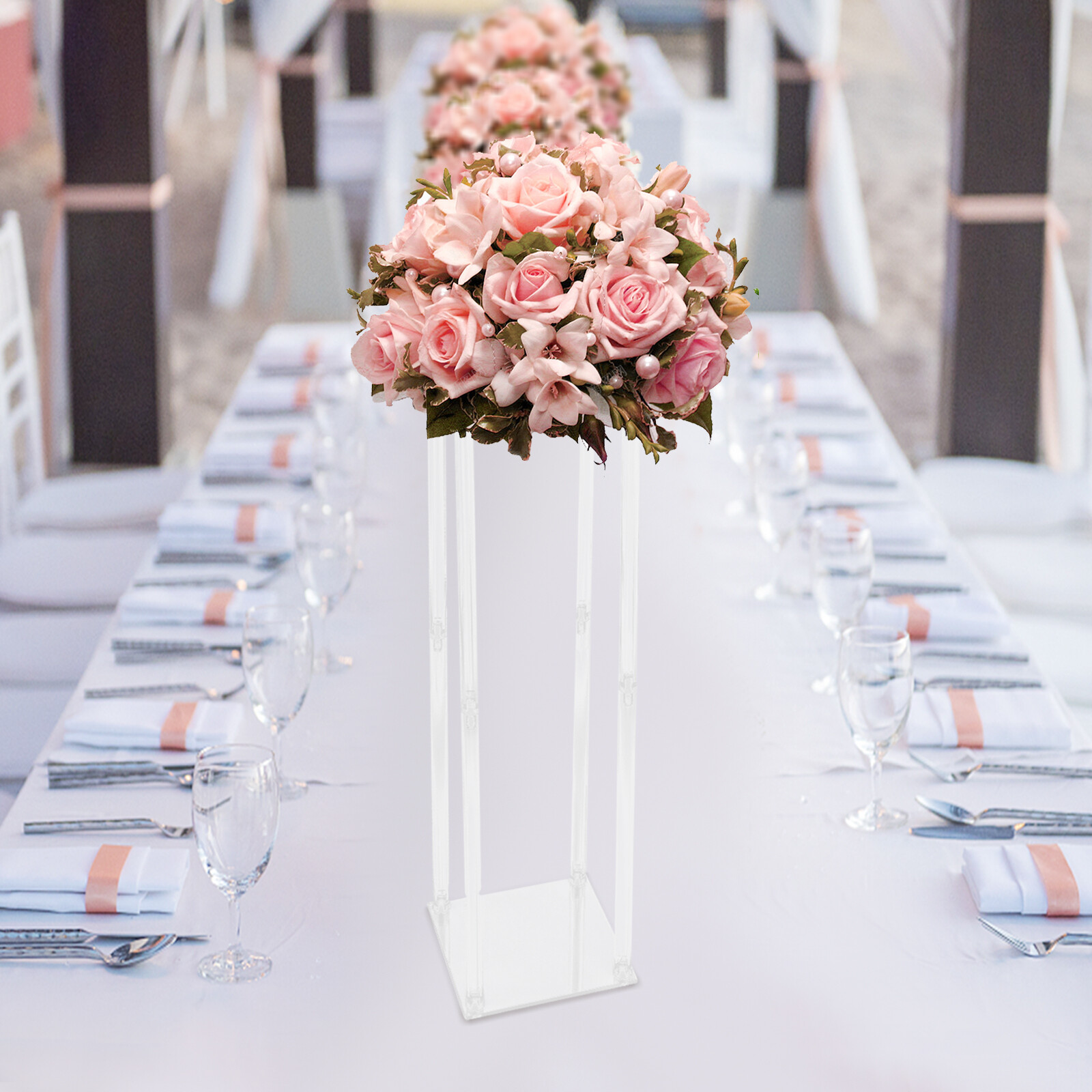 2pcs Tall Elegant Decorative Vase Column Acrylic Flower Stand Display Wedding