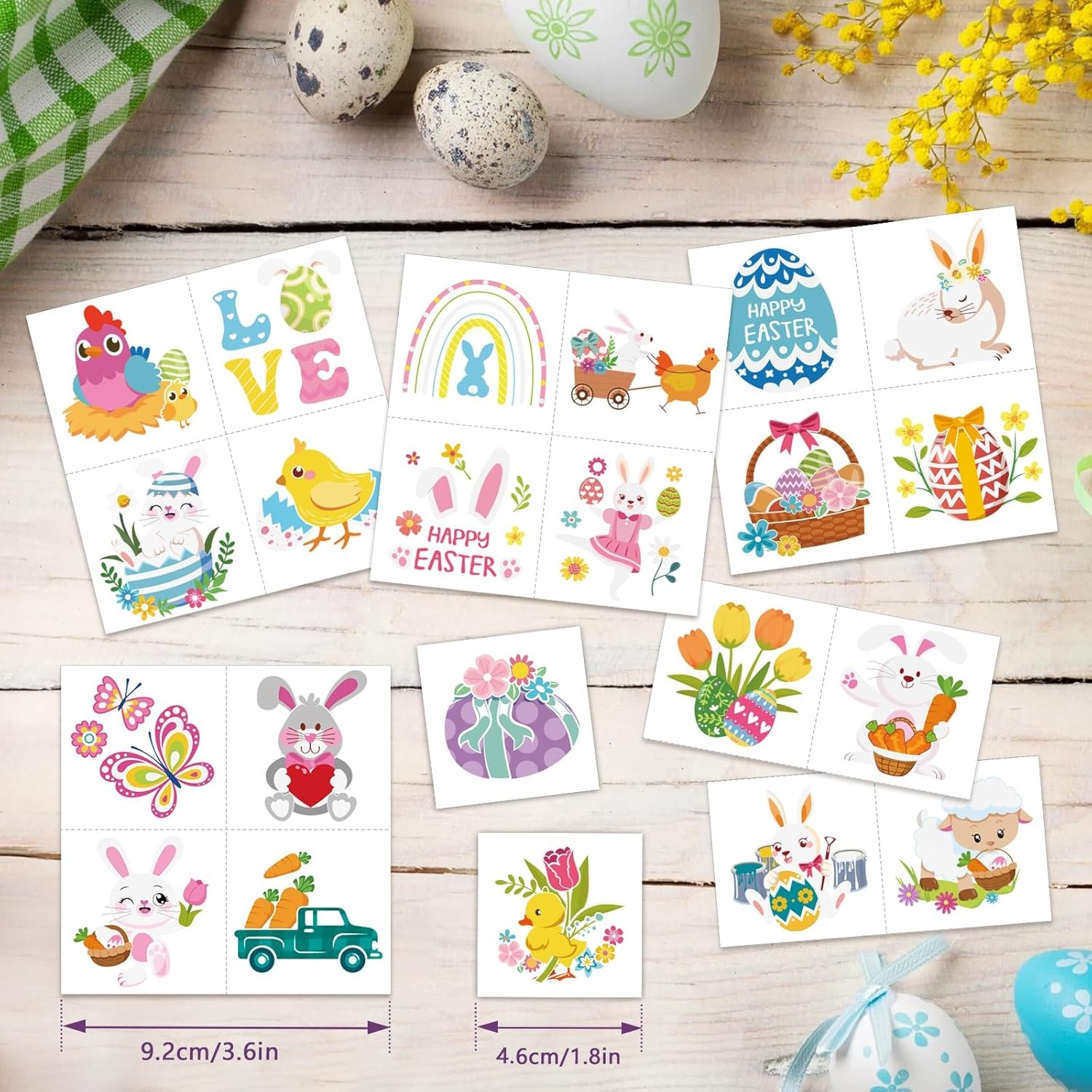 как выглядит Konsait 96Pcs Easter Tattoos for Kids, Colorful Easter Tattoos Stickers Easter T фото