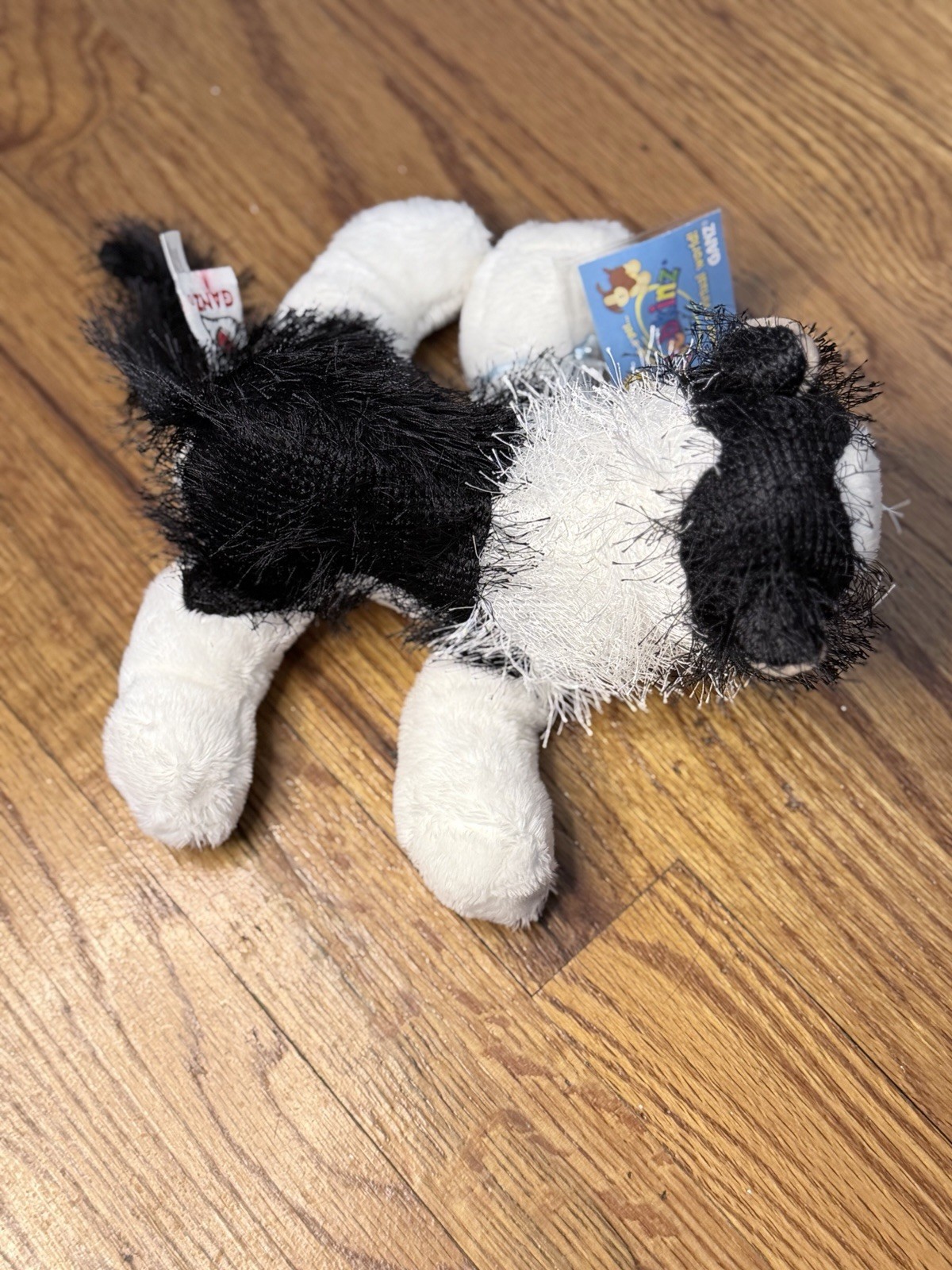 как выглядит HM016 Ganz Webkinz Black and White Cat Plush Toy With Code фото