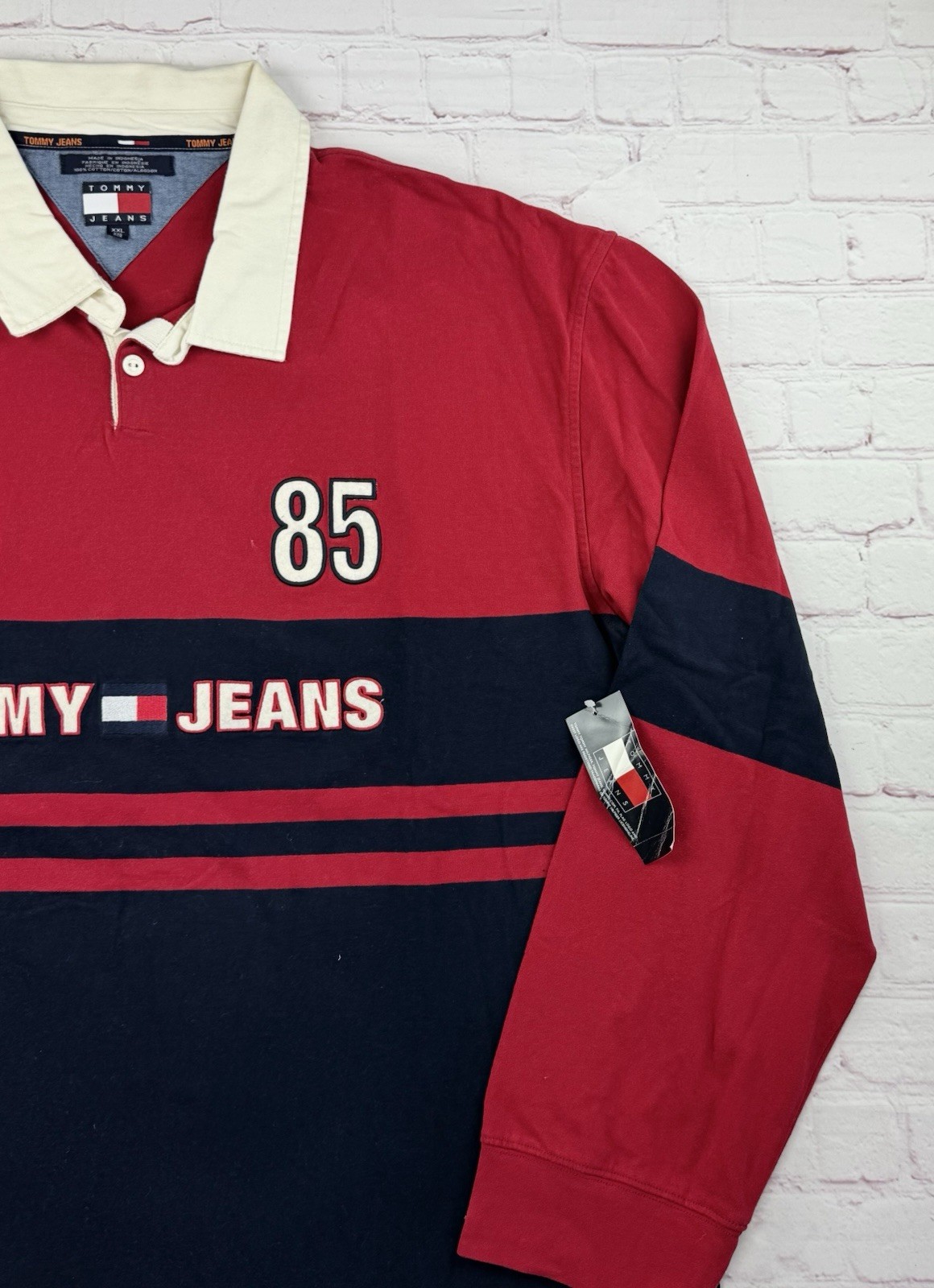 NEW/Old Stock VTG 90s Tommy Hilfiger 85 Red Navy XXL Mens Long Sleeve Polo Shirt