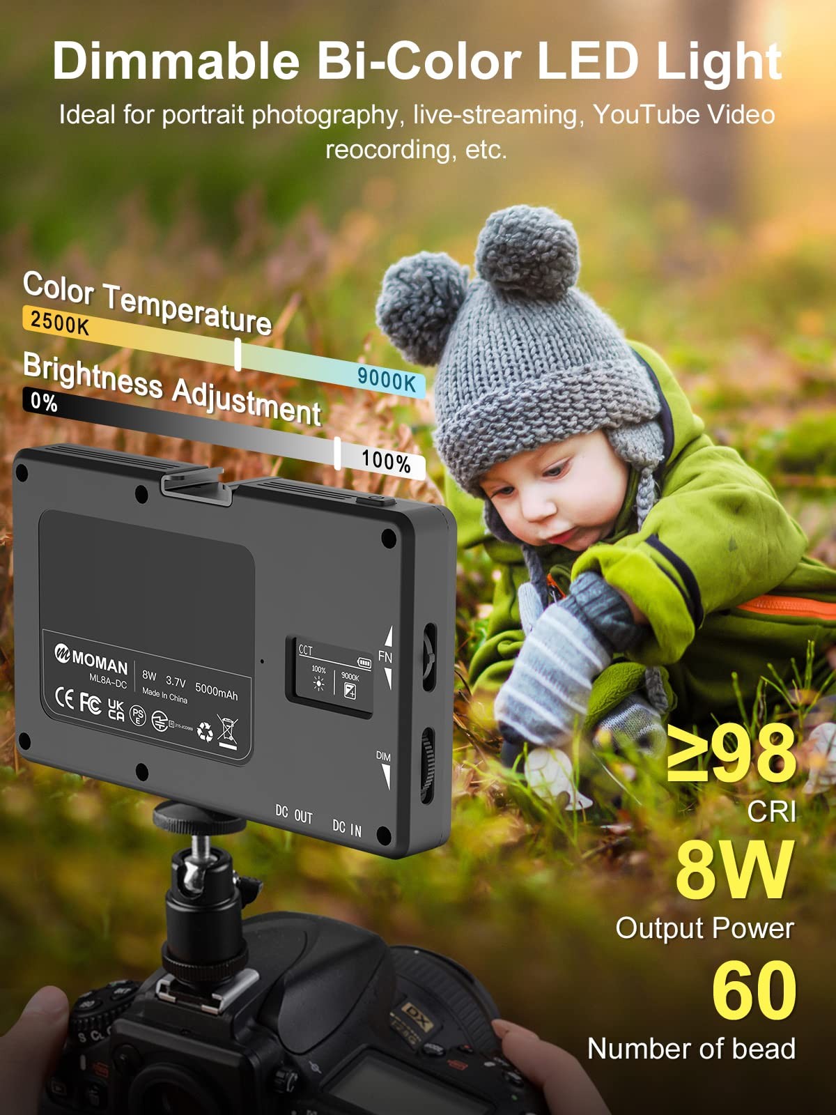 LED Video Light, Light for Photography, Portable 5000mAh Video Recording Ligh...