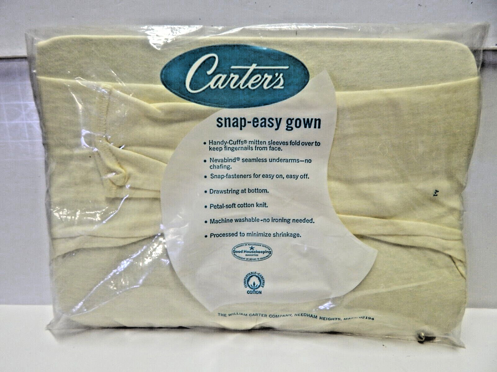 Vtg Carters LAYETTE Snap Easy GOWN Newborn Yellow Cotton Sealed