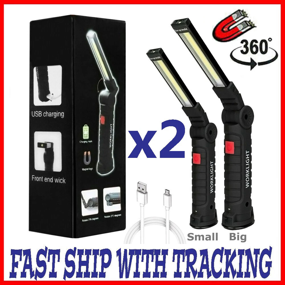 2x Rechargeable LED COB Work Light Mechanic Flashlight Lamp Magnetic Base Bright