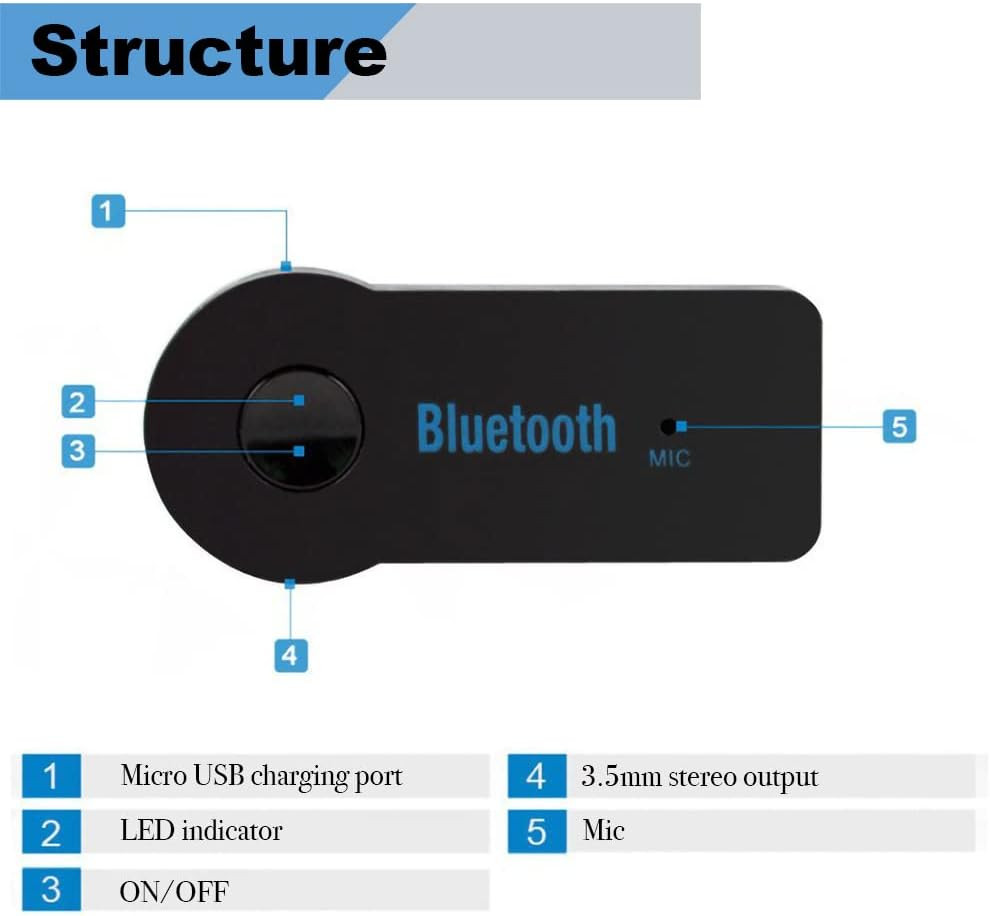 Adaptador Bluetooth AUX para Auto Receptor de Audio Inalambrico Manos Libres
