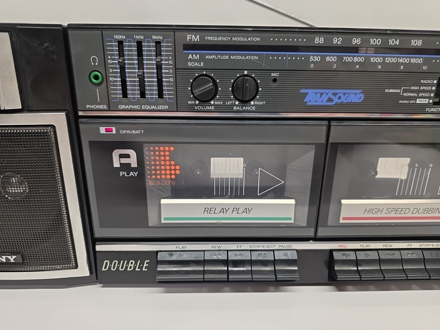 Vintage SONY CFS-W360 FM/AM Stereo Dual Cassette Boombox w/ Detachable Speakers