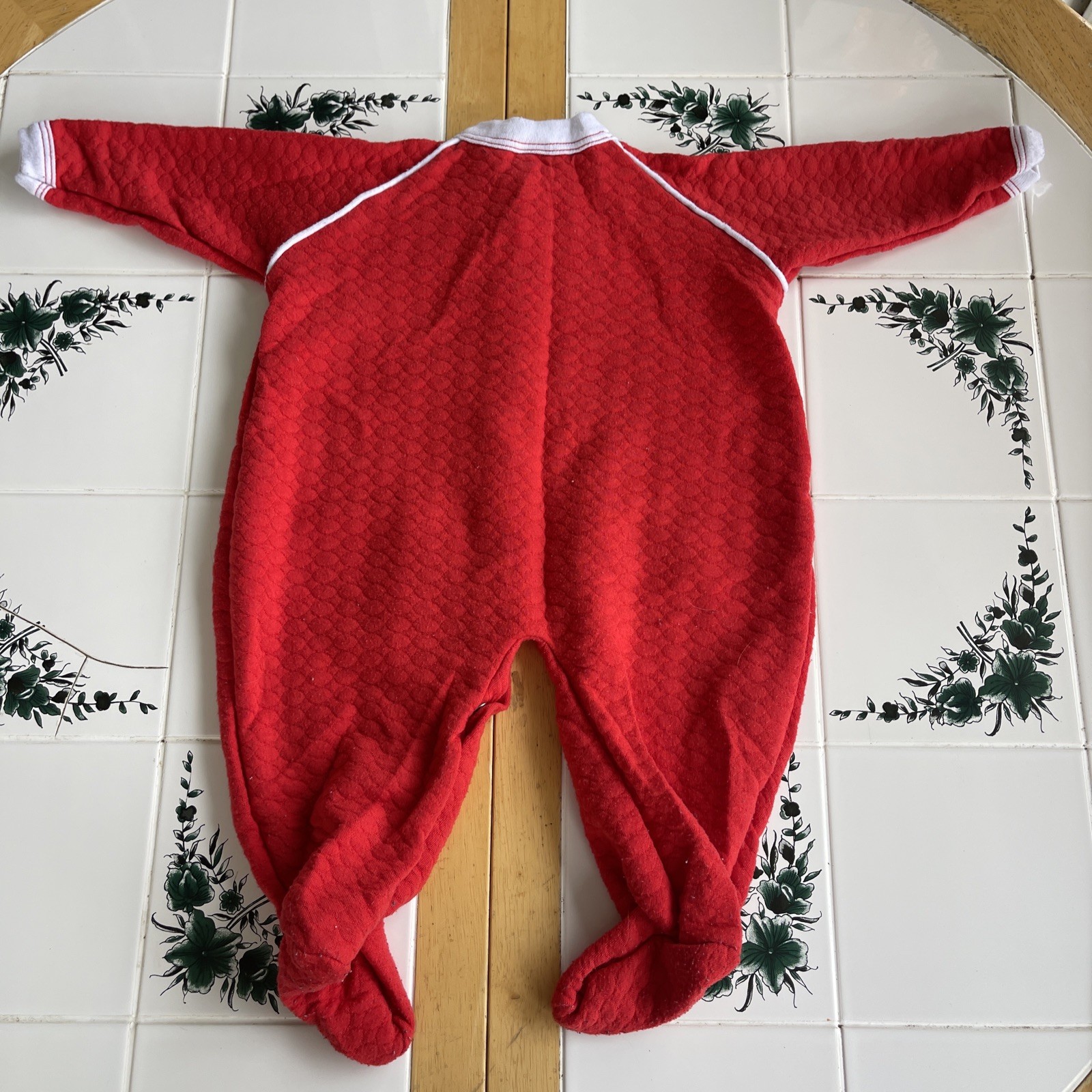 как выглядит Vintage Baby s First Christmas Sleeper 12M Red Bubble Romper Embroidered Snap фото