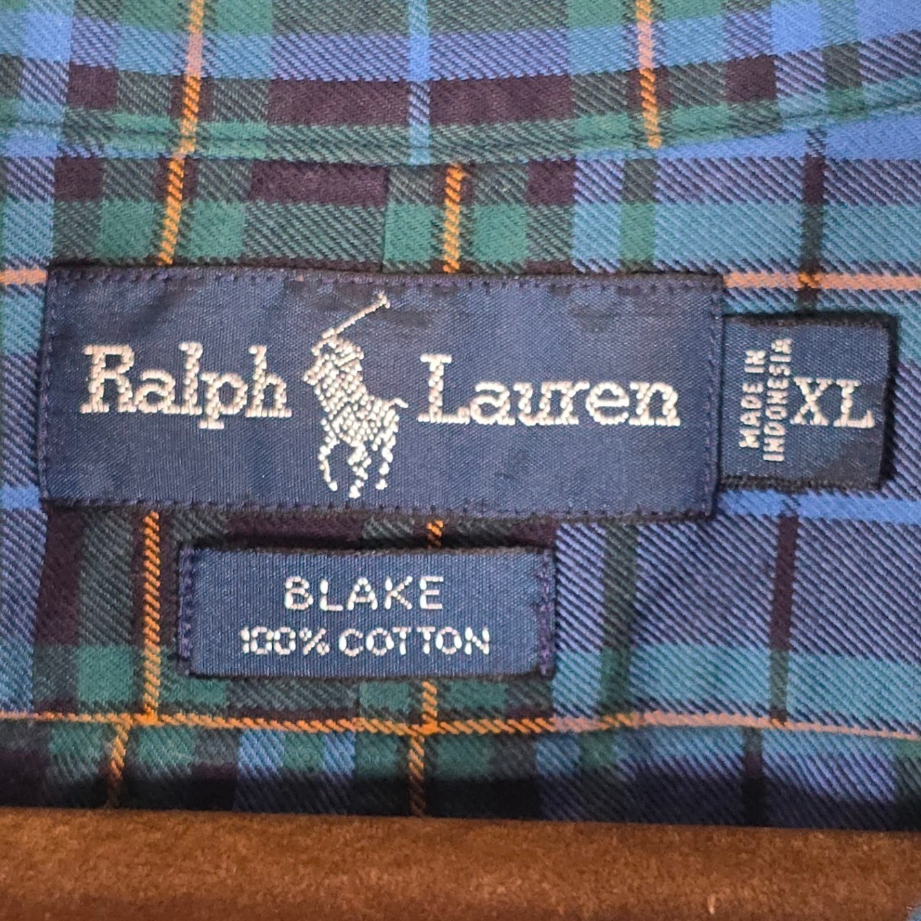 как выглядит Ralph Lauren Blake Mens XL Blue Green Plaid Cotton Long Sleeve Button Down Shirt фото