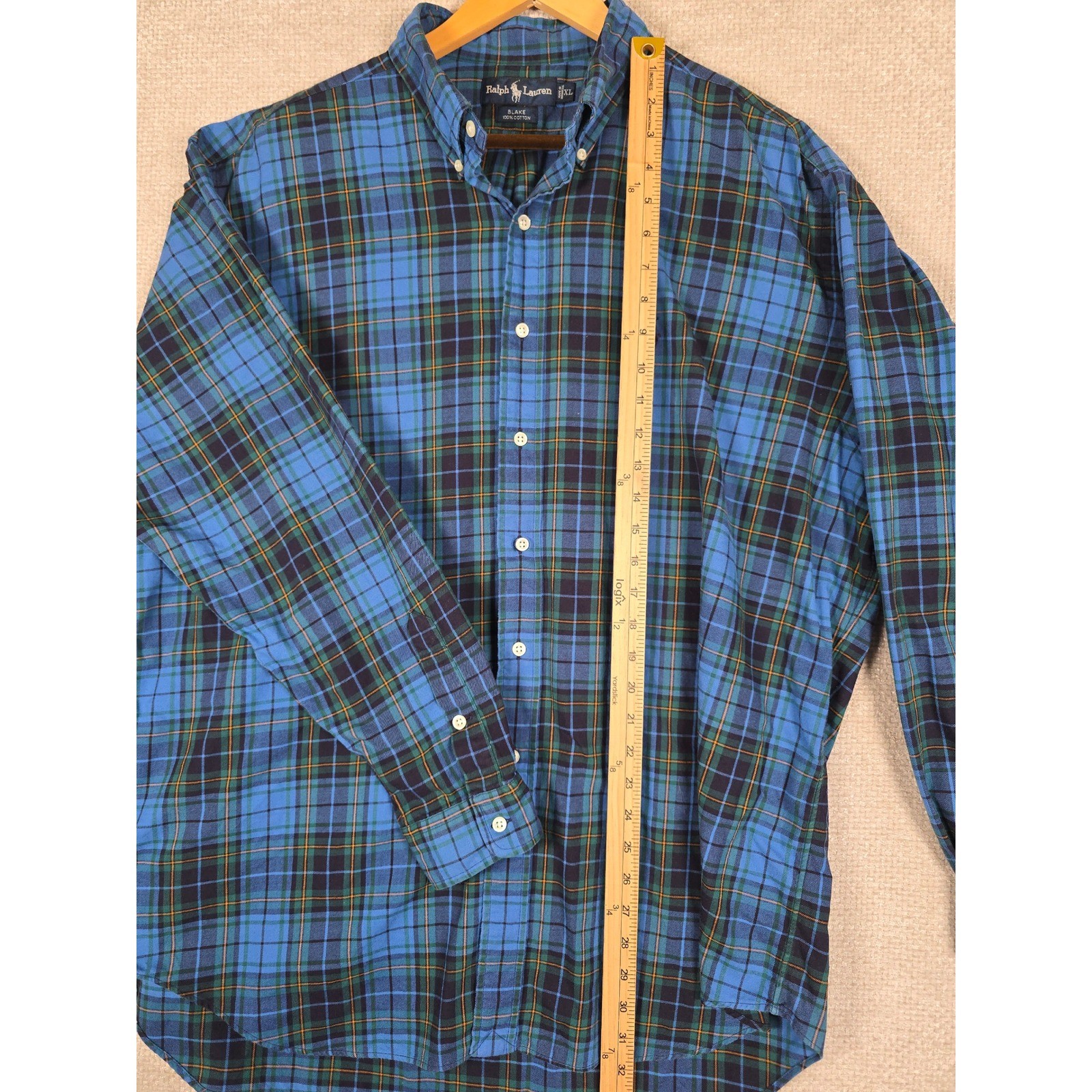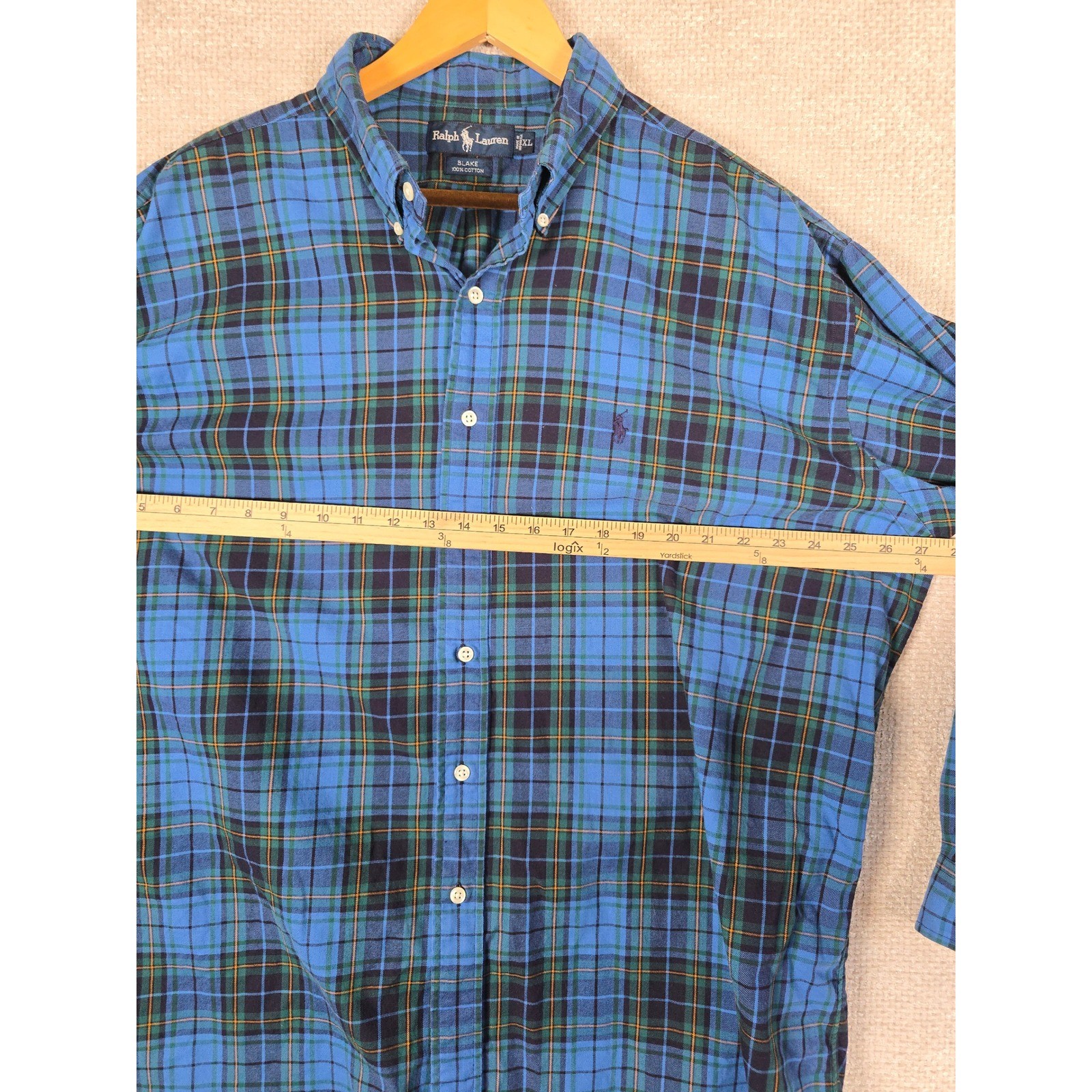 Ralph Lauren Blake Mens XL Blue Green Plaid Cotton Long Sleeve Button Down Shirt