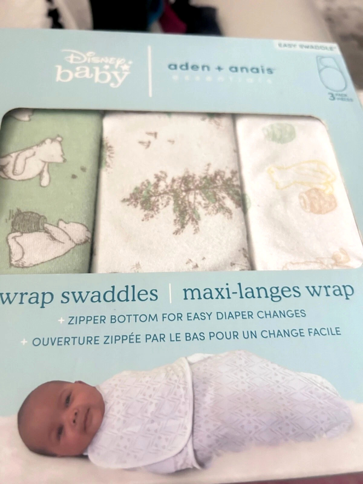 Aden Anais - Disney Winniethe Pooh Easy Wrap Swaddles 3 Pack NIB NEW Zipper