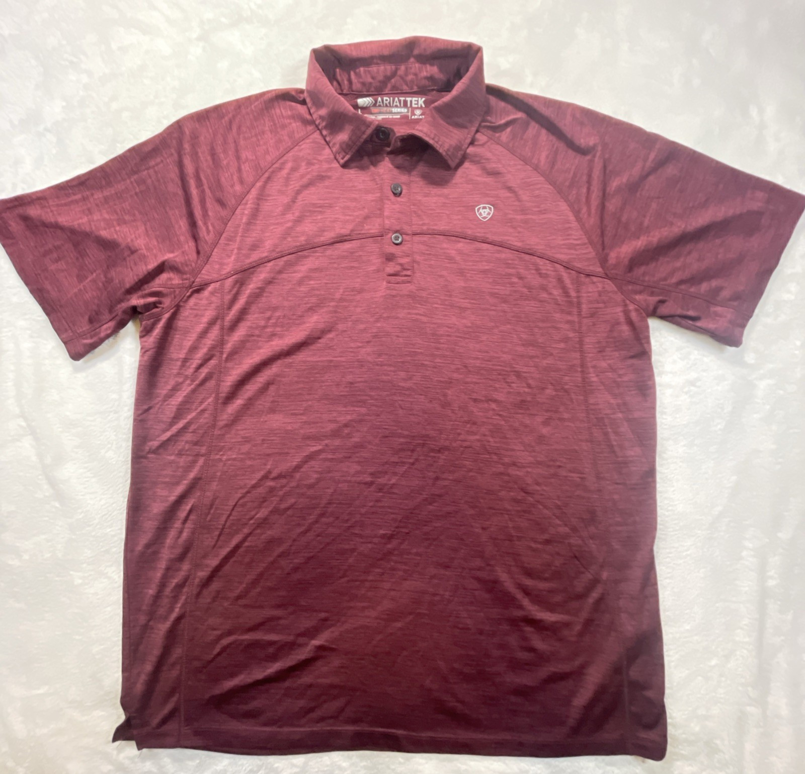 Ariat Tek Heat Series Polo Shirt Heathered Maroon Short Sleeve Outdoor Men's L