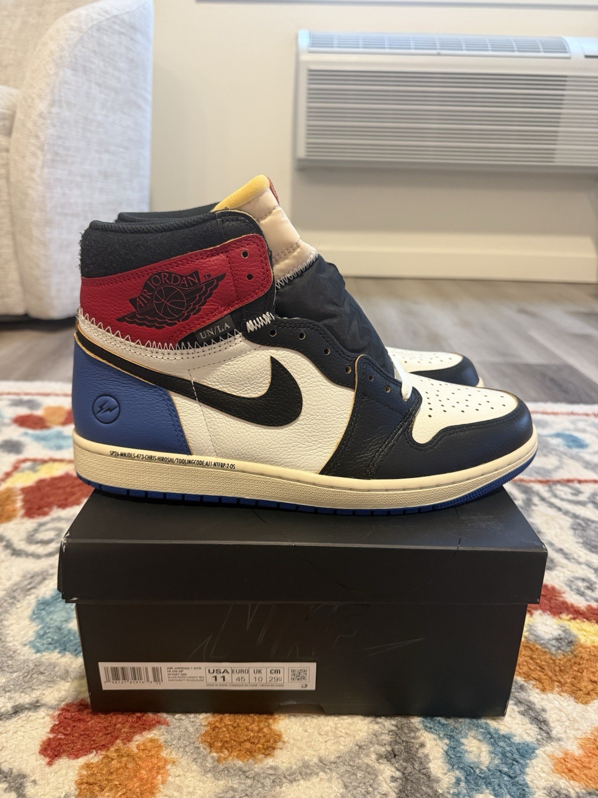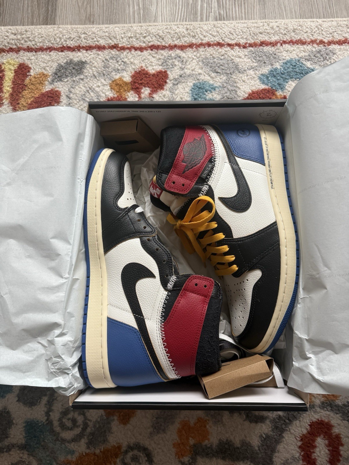 как выглядит Air Jordan 1 Retro High OG SP Fragment x Union LA  Varsity Red/Sport Royal фото