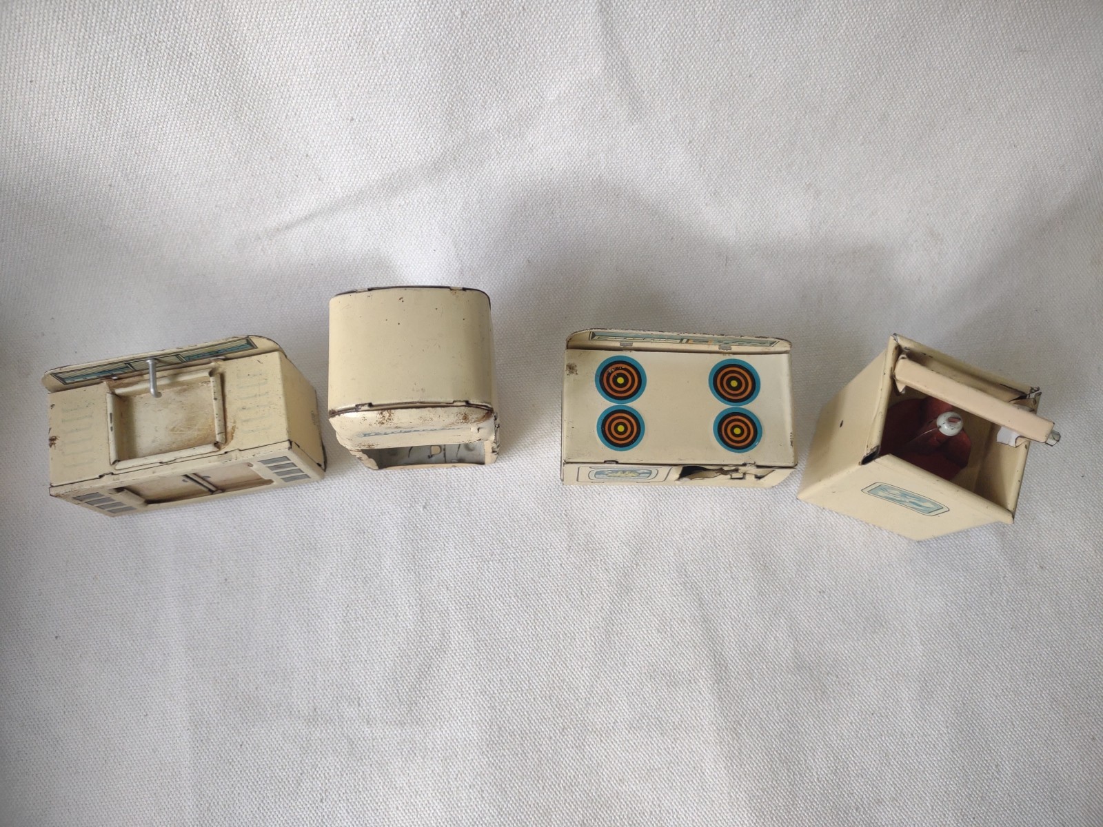Vtg Linemar Toy Litho Tin Dollhouse Kitchen Sink Stove Refrigerator Washer Japan