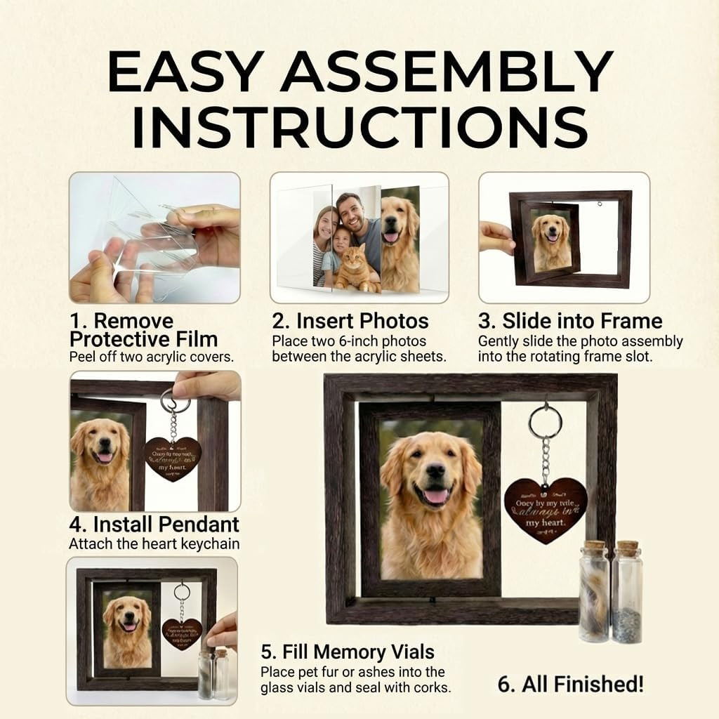 Rotating Wooden Dog Cat Memorial Picture Frame, Pet Sympathy Gift, Funeral Tri