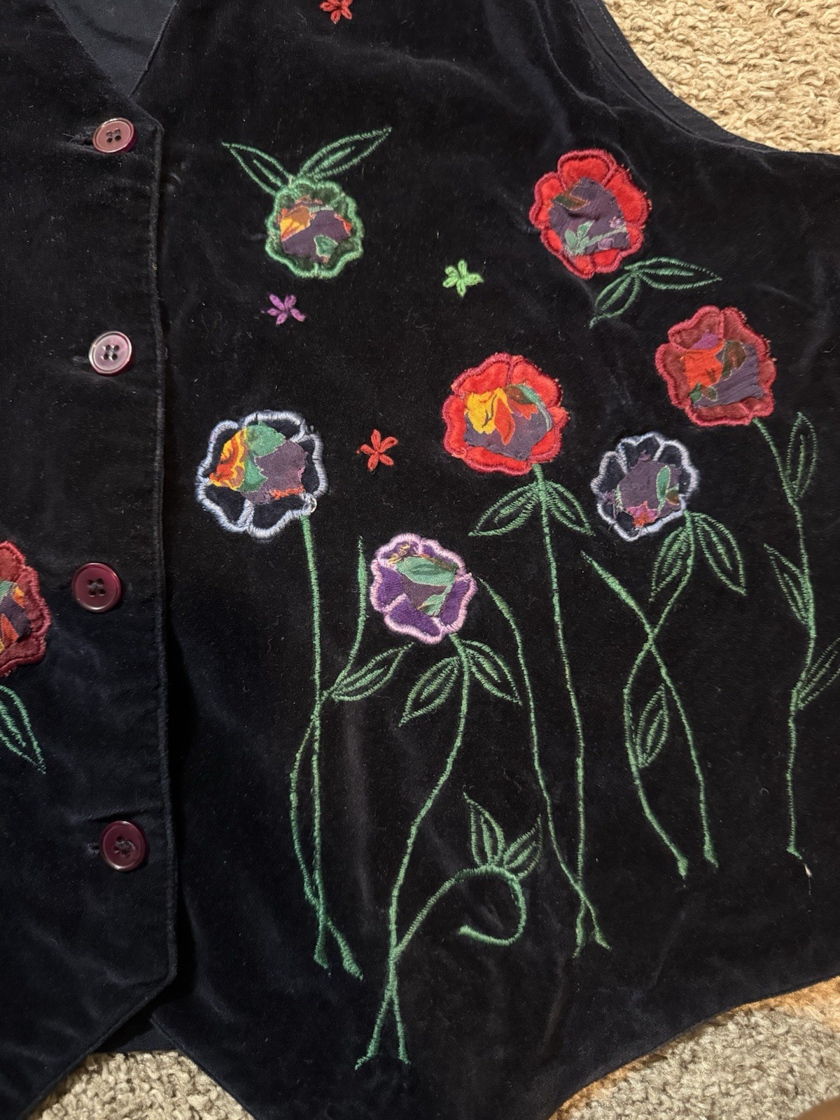VTG Casey Max Womens Vest Holiday Embroidered Flowers Floral Black Medium