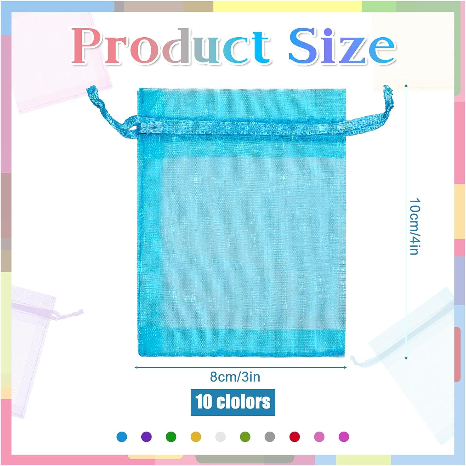 500PCS Sheer Organza Drawstring Bags, 3x4 Small Mesh Pouches in Assorted Colors
