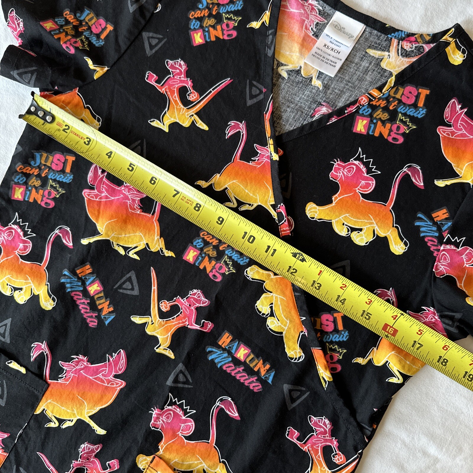как выглядит Disney Lion King Scrub Top Women size XS Black Hakuna Matata Short Sleeve фото