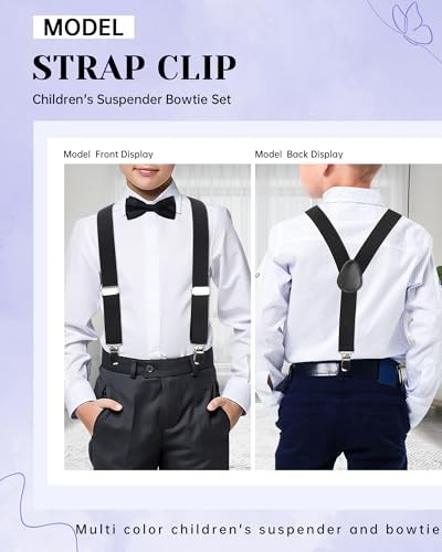 Kids Suspender Bow Tie Sets - Adjustable 25Inches 6 Months to 7 Years Black