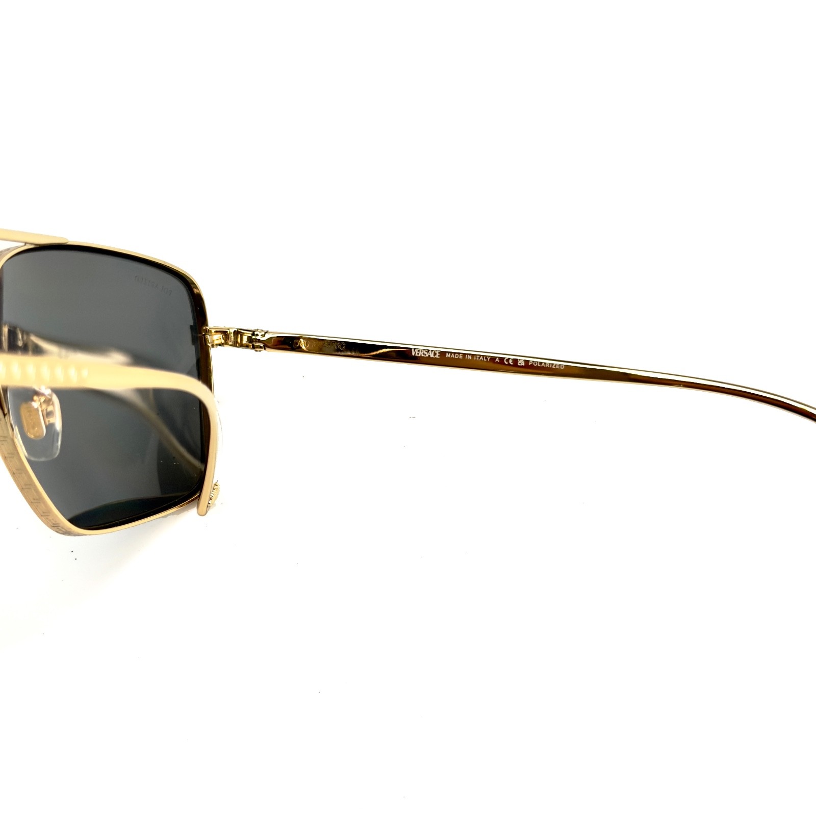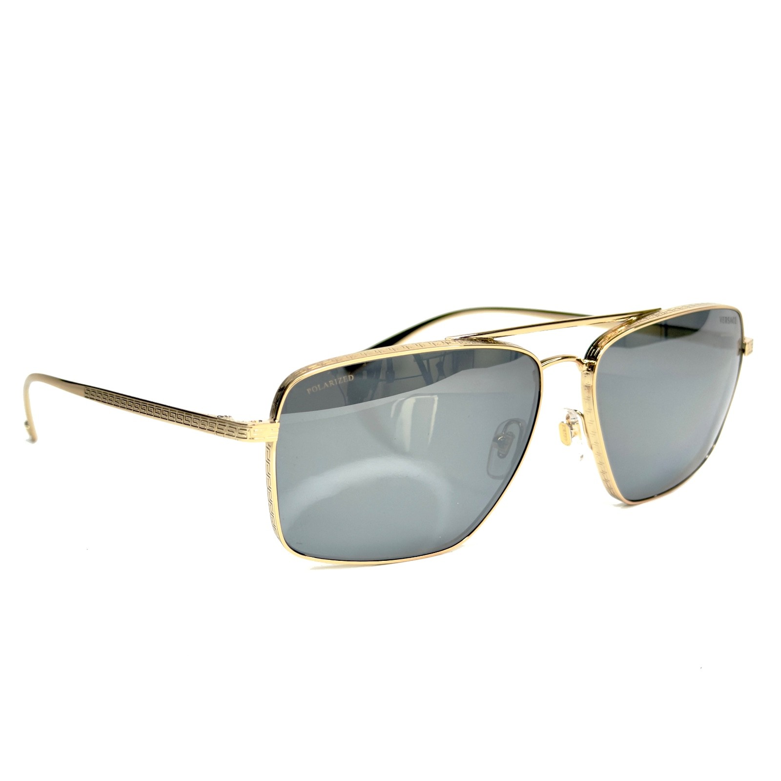 VERSACE VE2216 GRECA Medusa 2216 Gold Silver Mirror Polarized Aviator Sunglasses