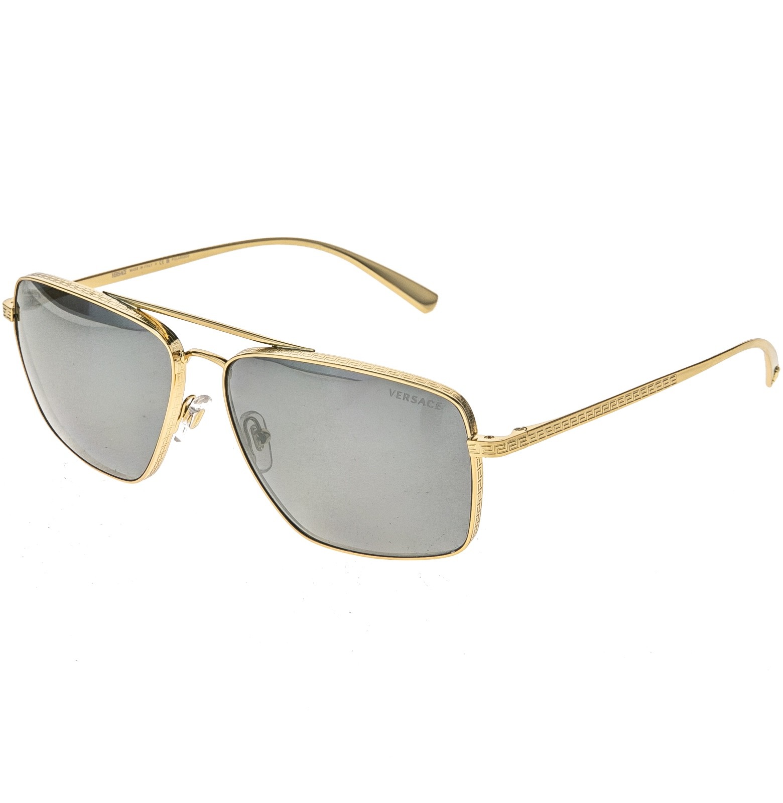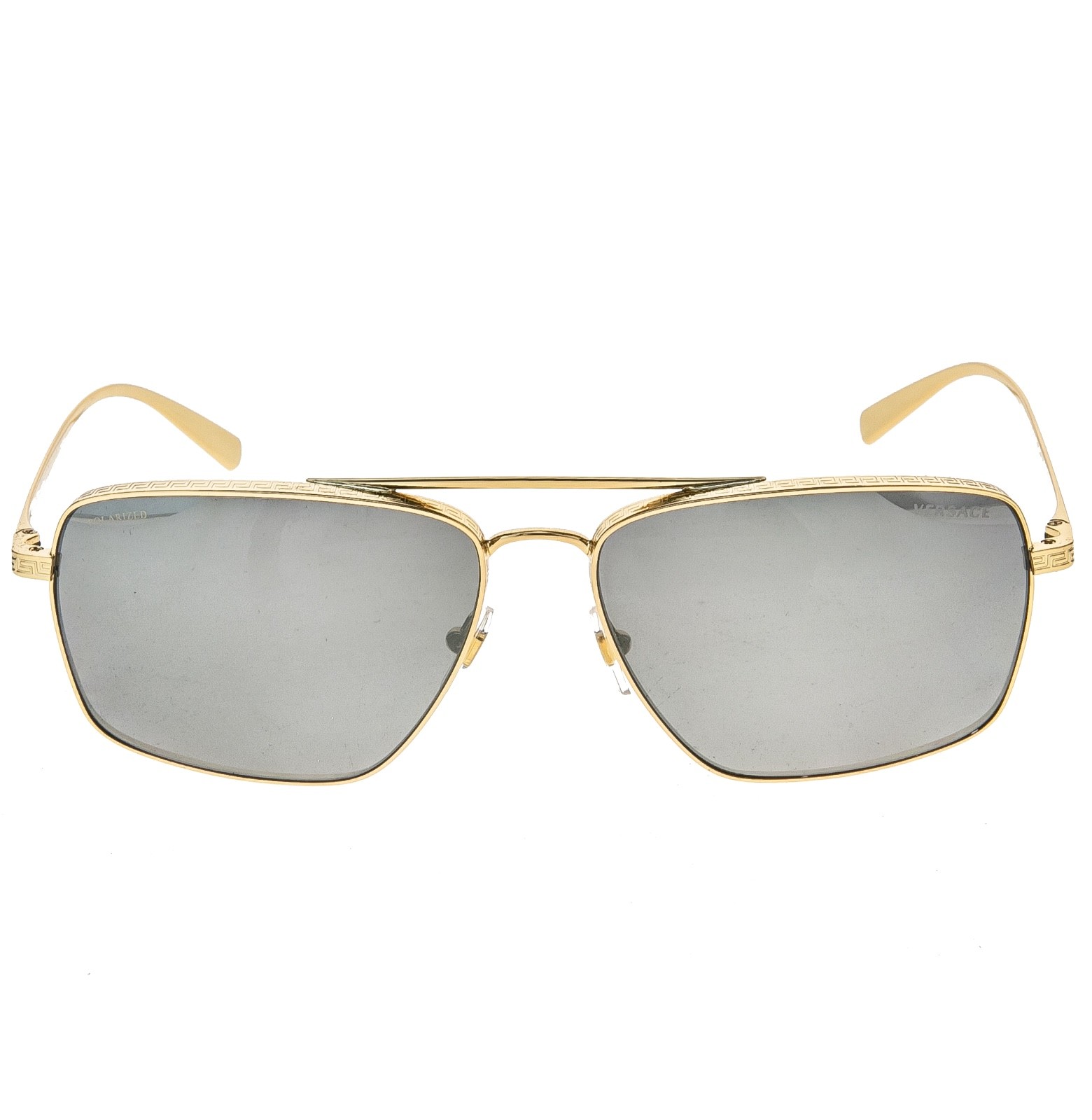 как выглядит VERSACE VE2216 GRECA Medusa 2216 Gold Silver Mirror Polarized Aviator Sunglasses фото