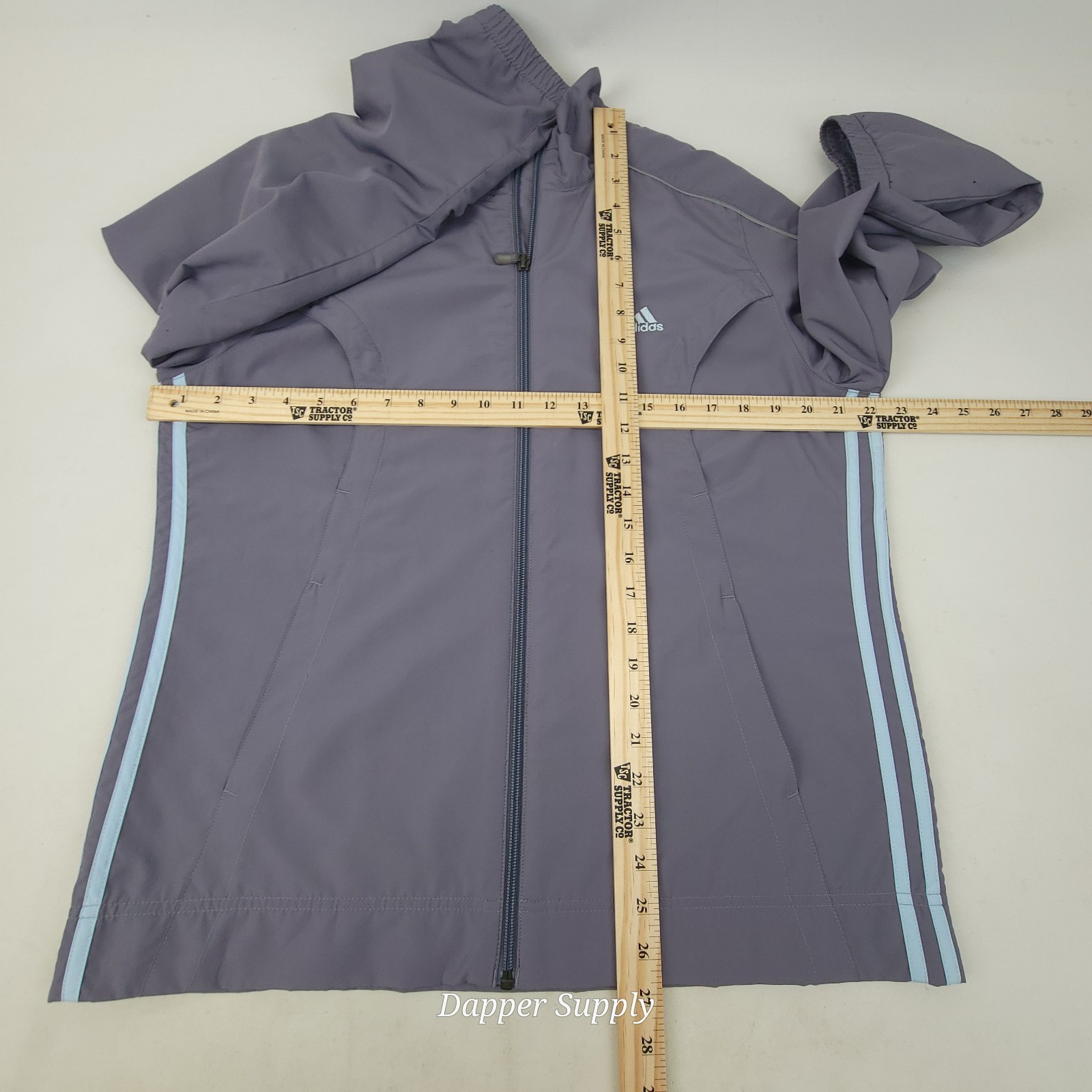 как выглядит Adidas Women s L Grey Windbreaker Jacket Zip Up Mesh Lined 3 Stripe Blue Damage фото