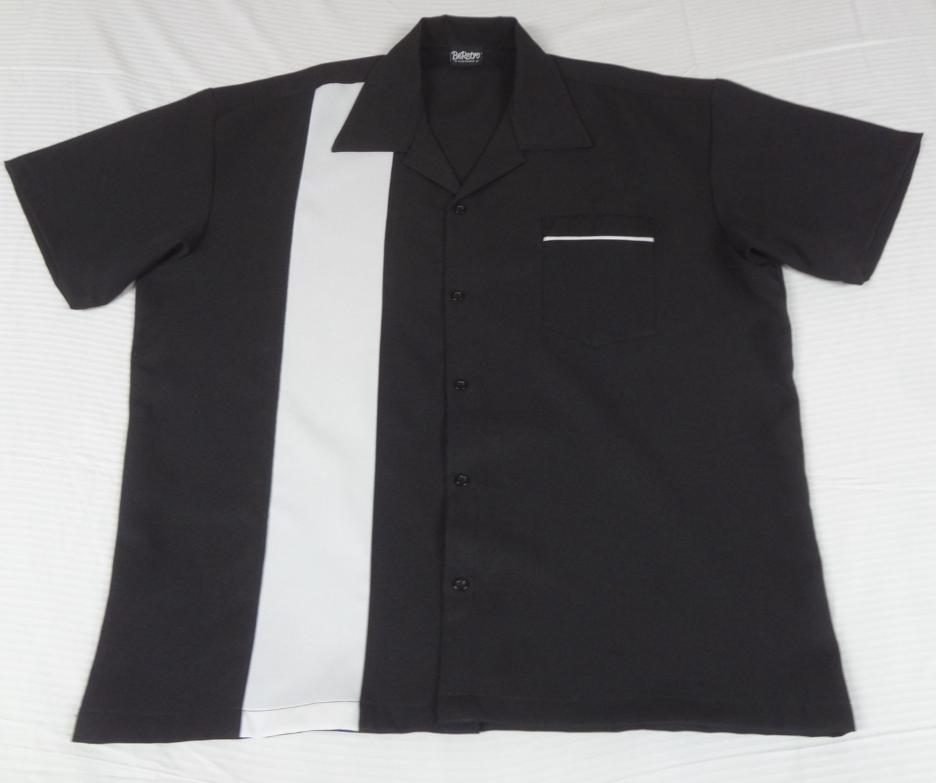 Retro Black/White 1 Stripe Rockabilly Bowling Shirt Button Front 2XL L518