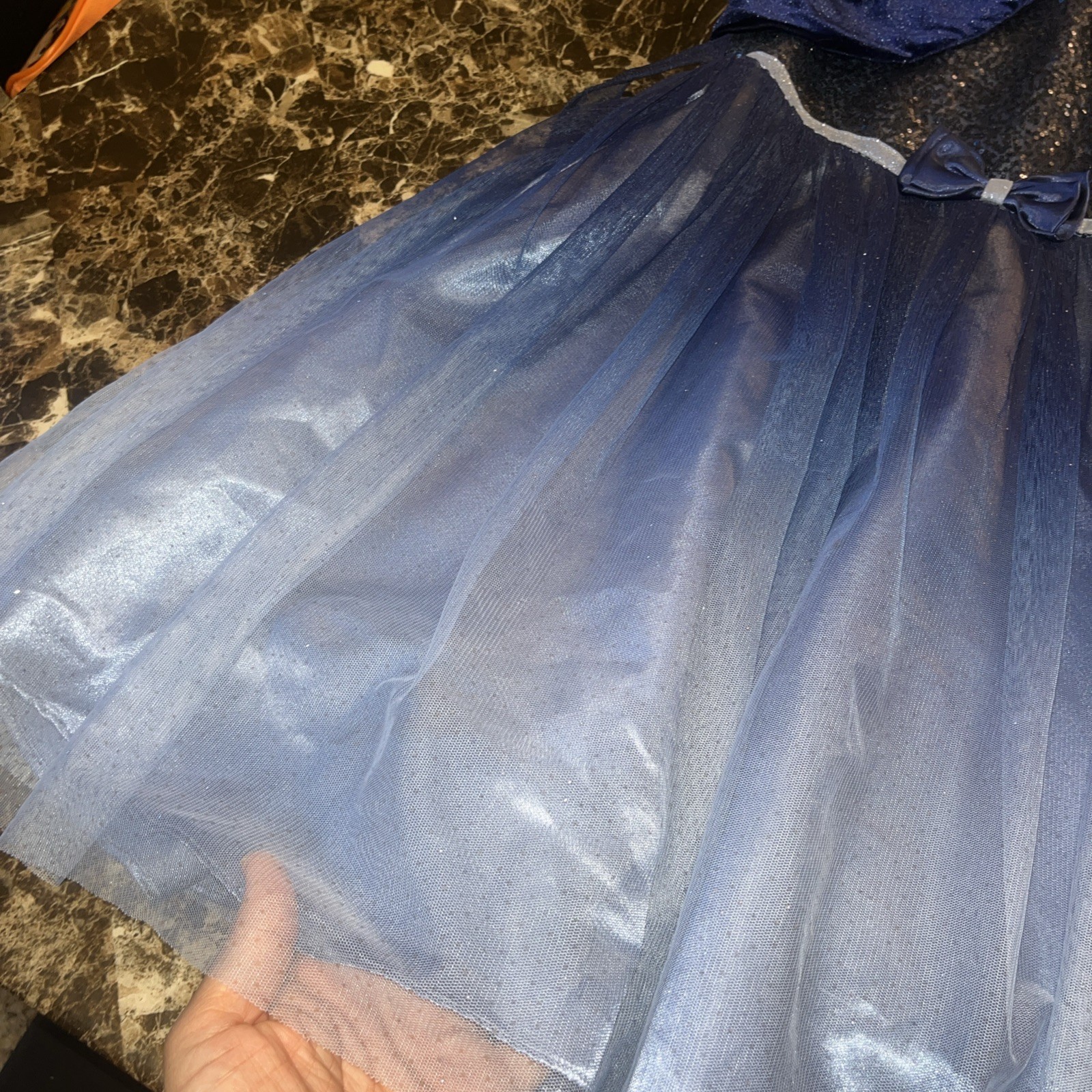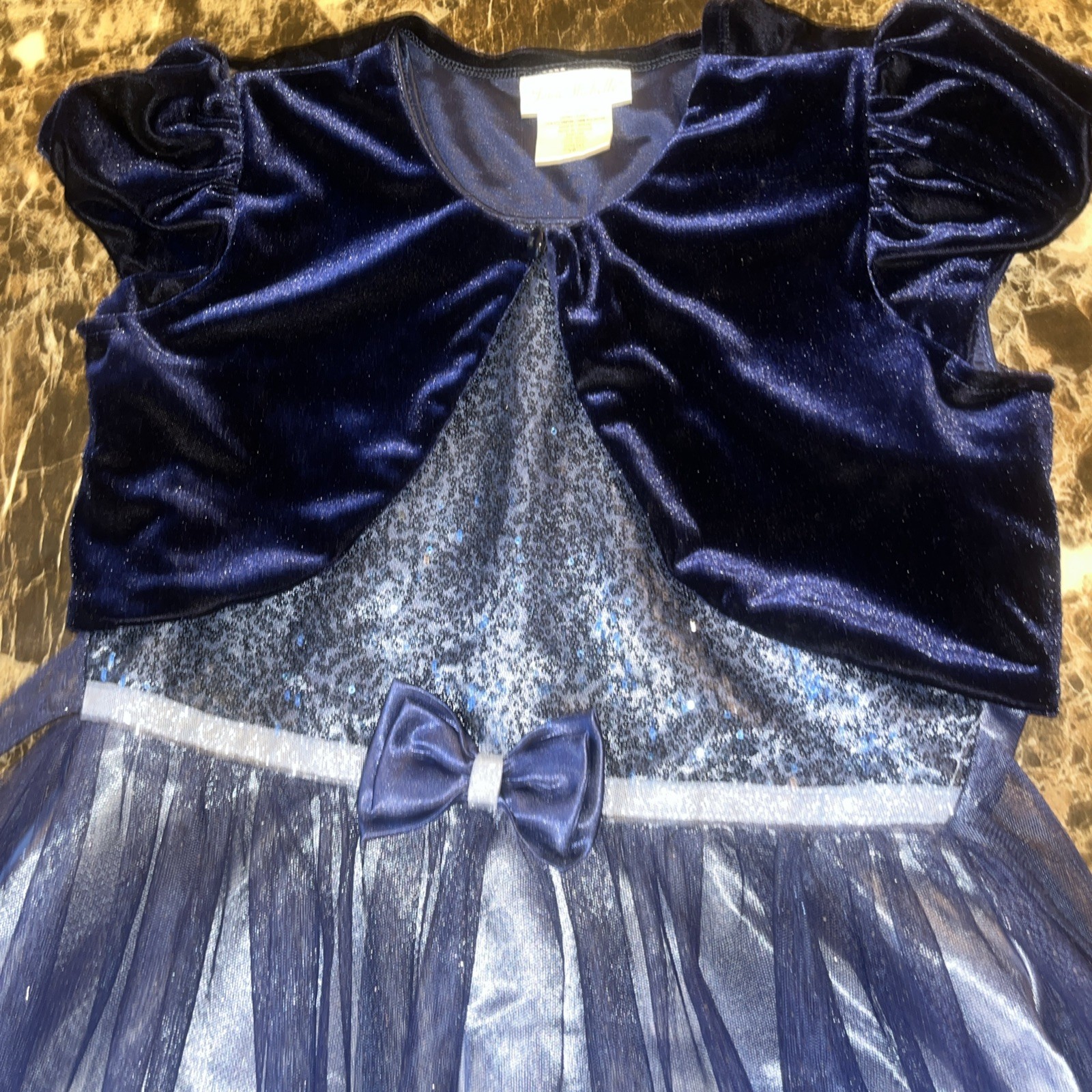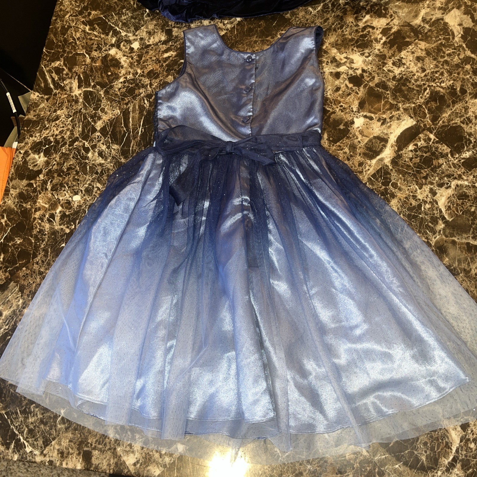 как выглядит Jona Michelle Dress Girls 10 Navy Blue Sparkle Tulle Formal Party Bow фото