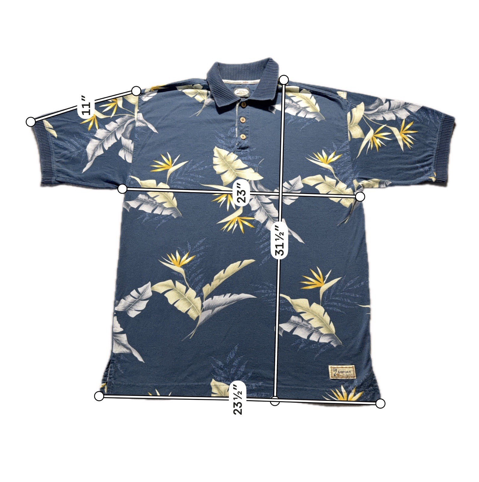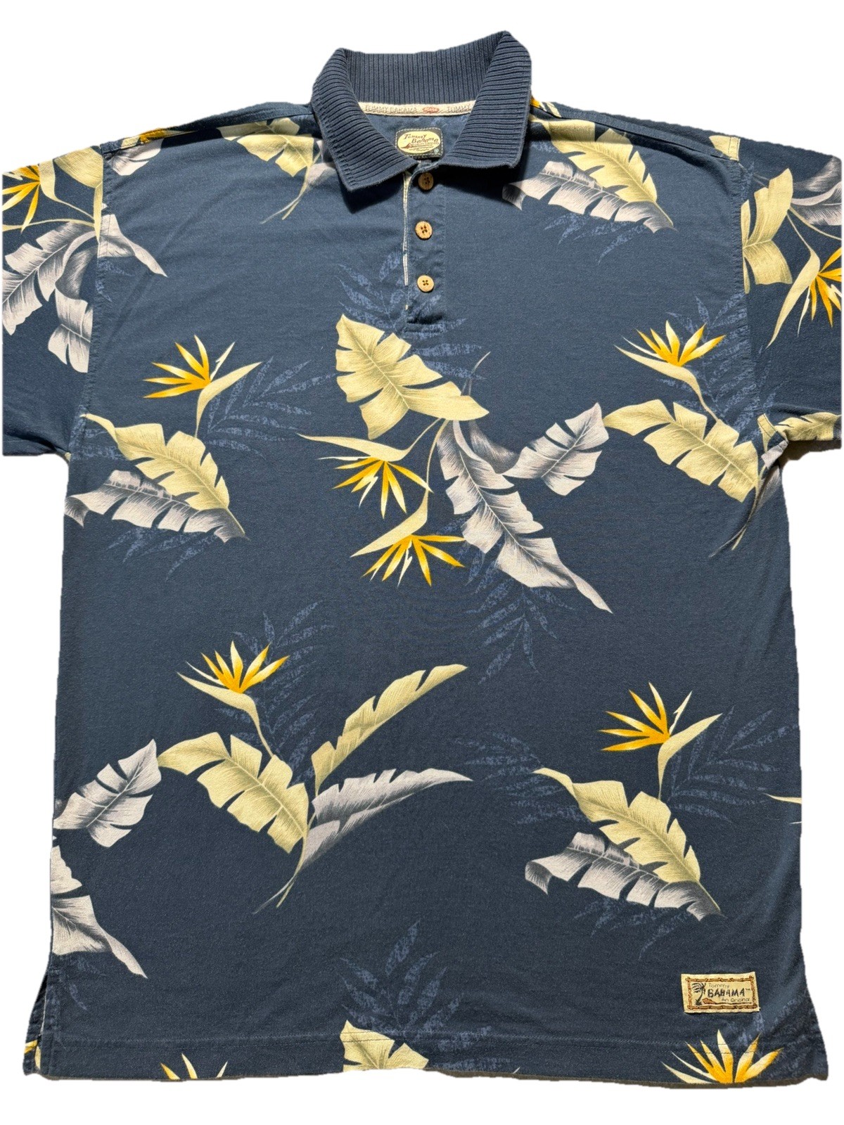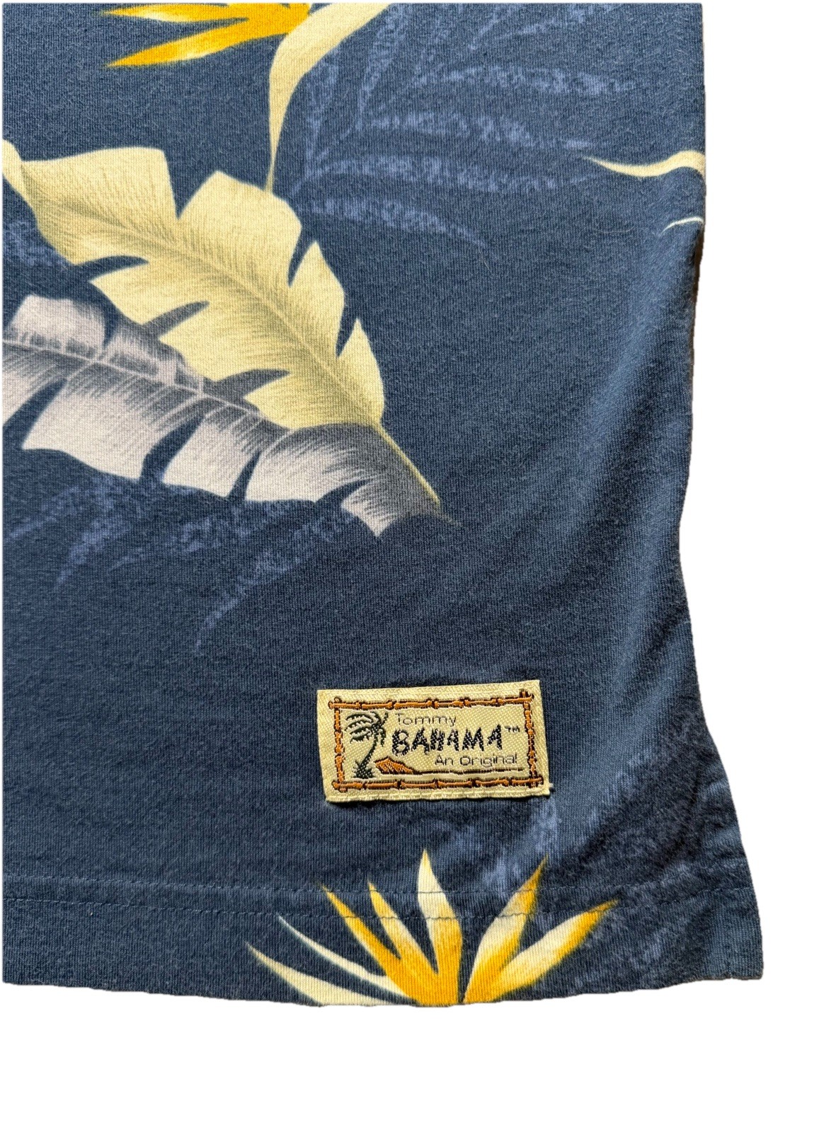 Tommy Bahama Polo Shirt Mens Medium Navy Floral Tropical Vintage Logo