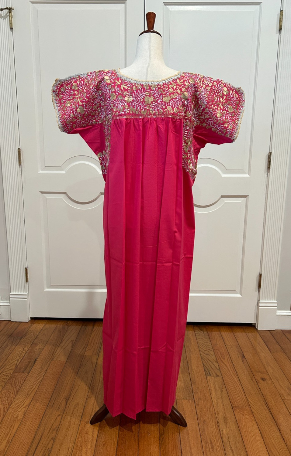 XL San Antonino Maxi Dress, Oaxaca Mexican dress. hand Embroidered. Silk Threads