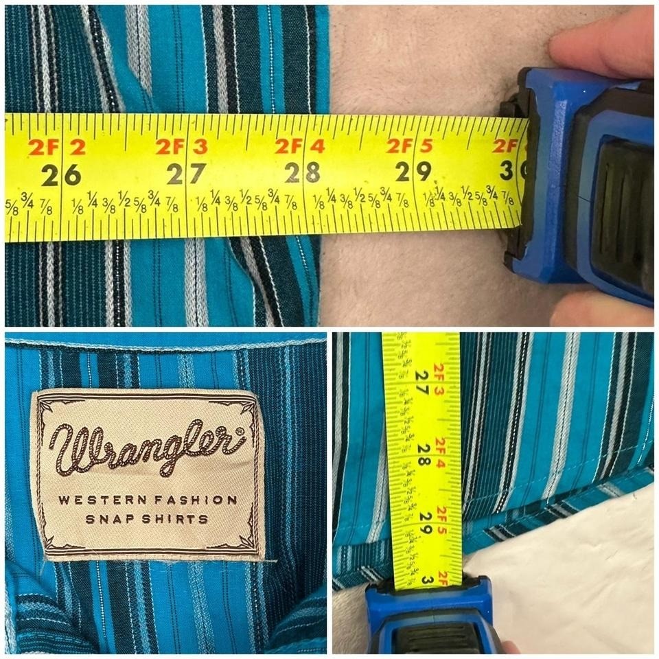 как выглядит Vintage Wrangler Western Blue Short Sleeve Striped Pearl Snap Shirt 2XL фото