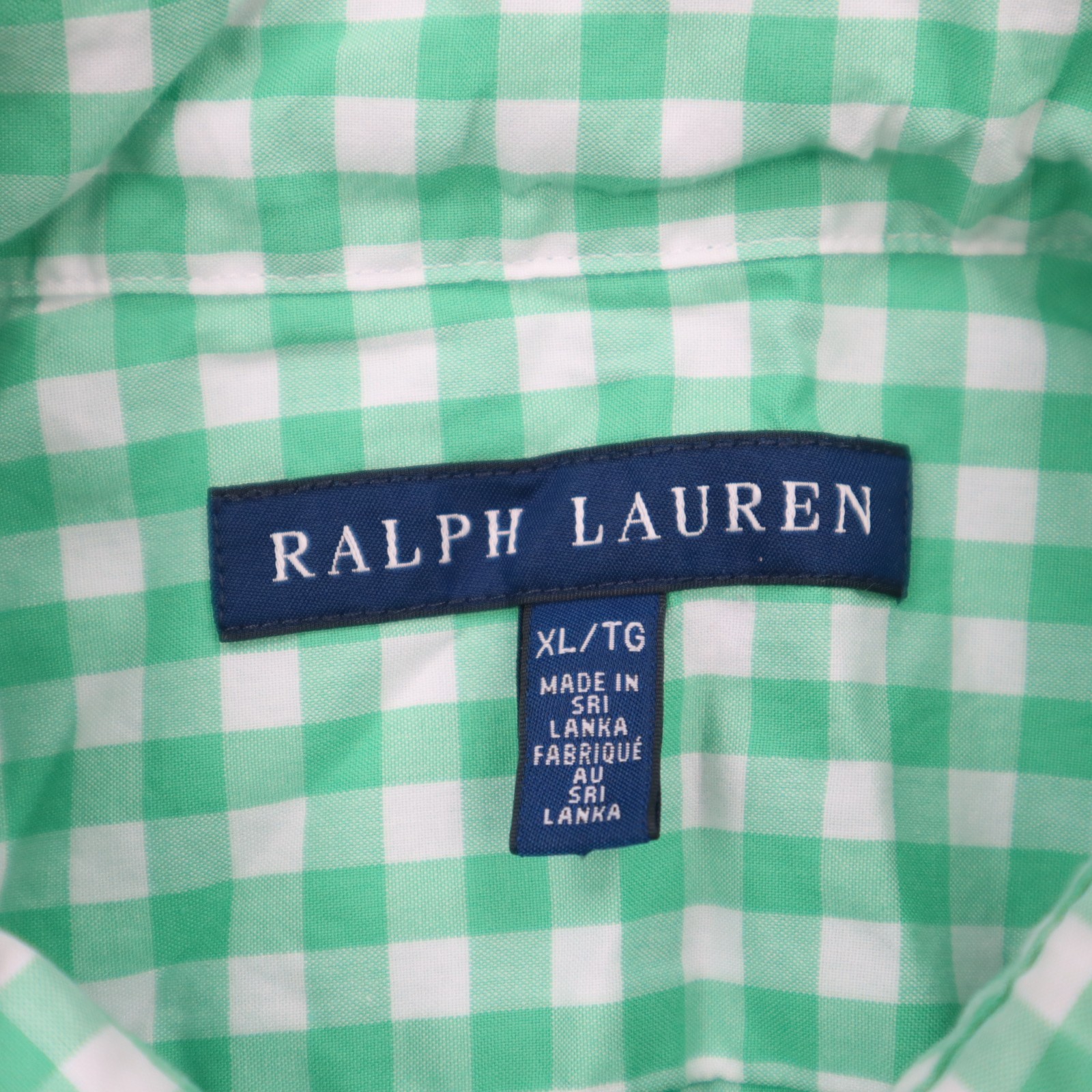 Ralph Lauren Button Down Shirt Mens XL Green White Gingham Check Pony Preppy