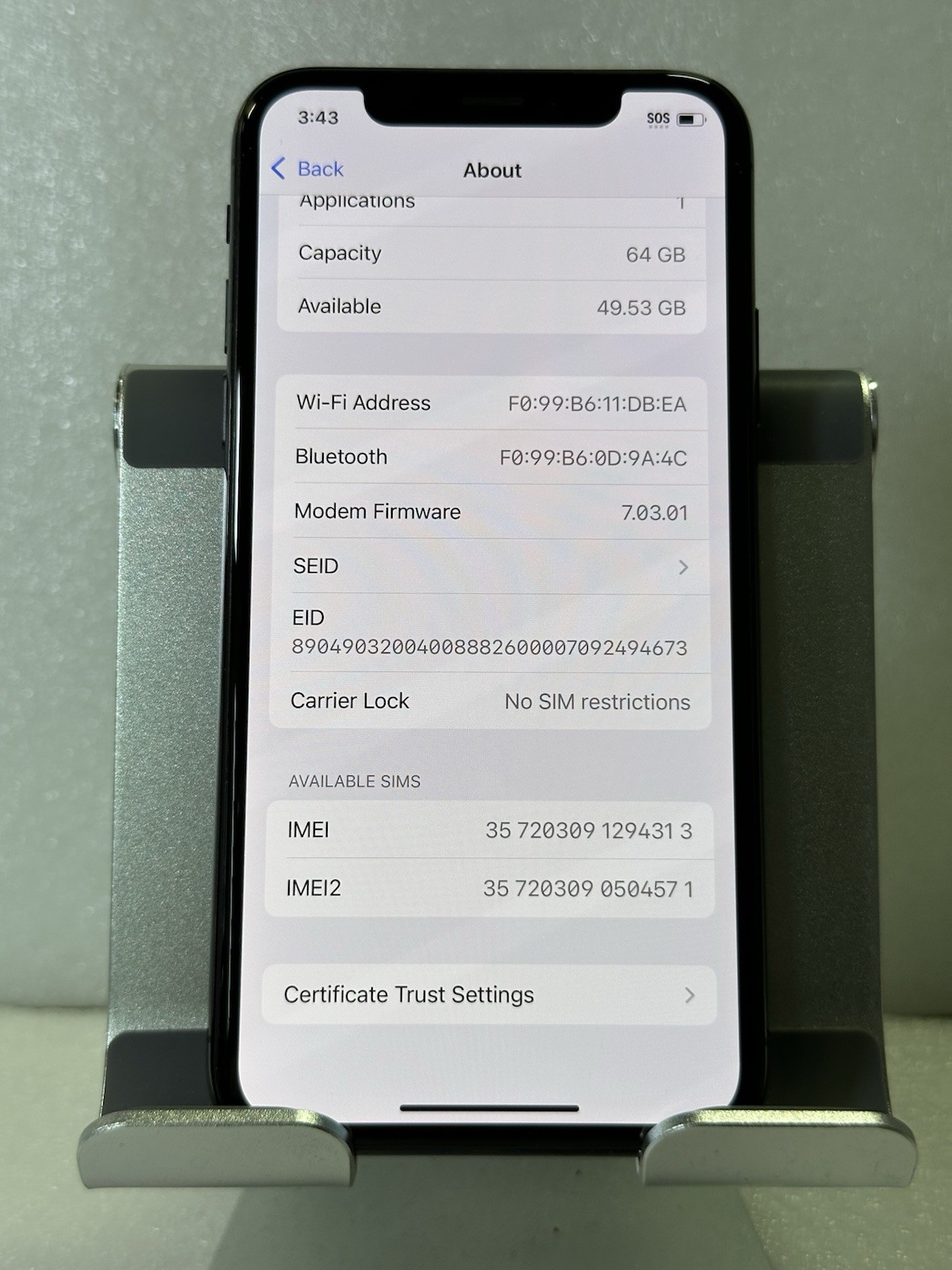 Apple iPhone XS - 64 GB - Space Gray Unlocked E3.15