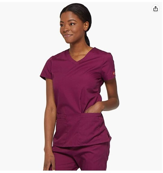 как выглядит NWT Women s Dickies EDS Signature V-Neck Scrub Top Large Wine Red Color фото
