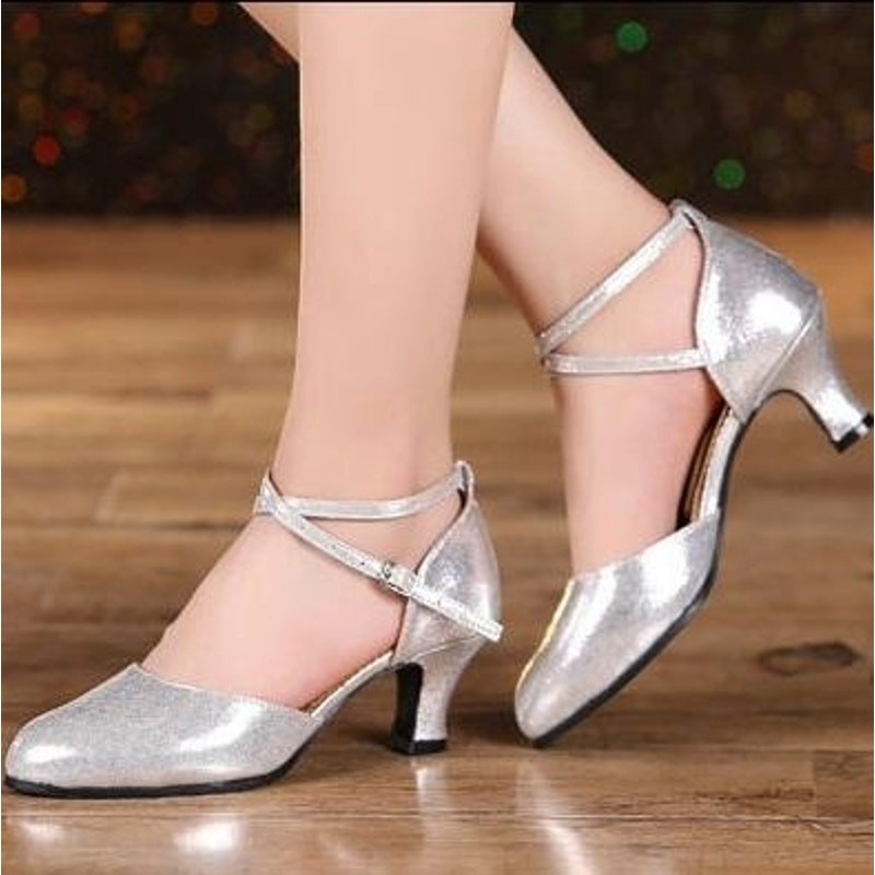 Dance Sway Silver Leatherette Rubber Sole Modern Ballroom Dance Shoes - US 4