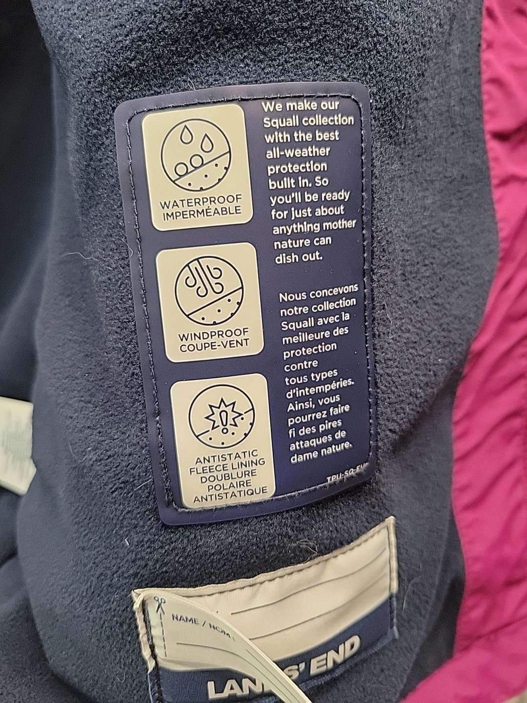Land's End Squall Pink Waterproof Winter Jacket Parka Kids XXL 18-20 , Womens L