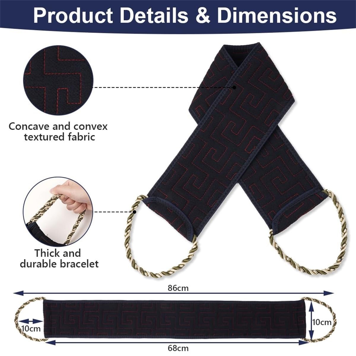 Exfoliating Back Scrubber for Shower, 34 Inches with Black