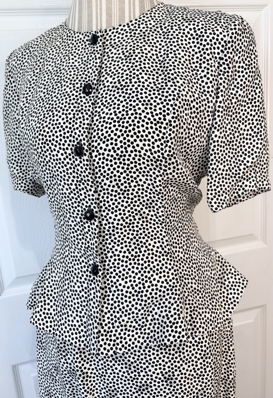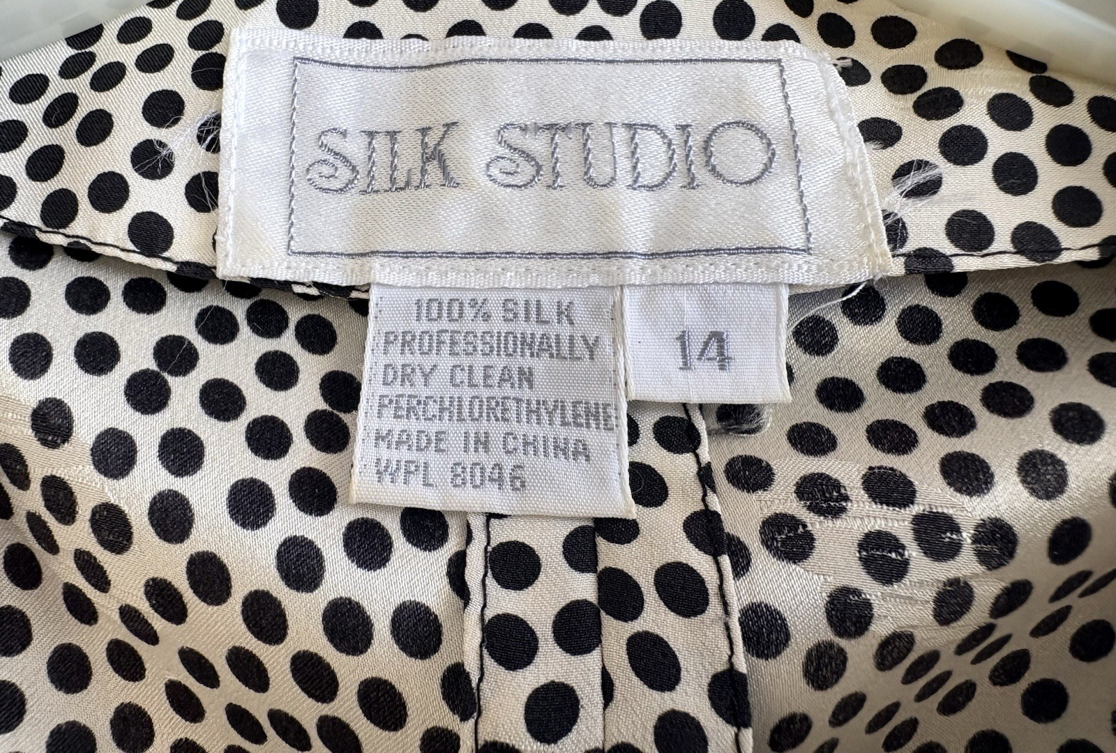Vintage 80s 90s SILK STUDIO 100 Silk Embossed Polka Dot Skirt Set Size 14