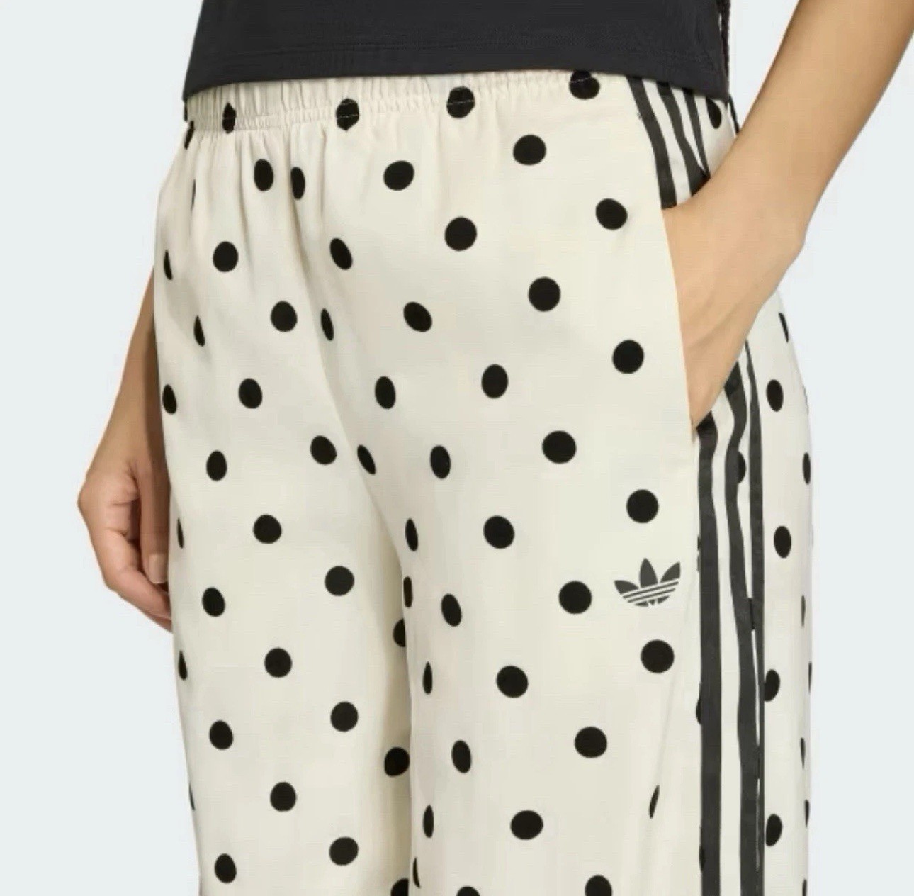 Adidas Satin Polka Dots Wide Leg Track Pant White Black Size Medium KV1168